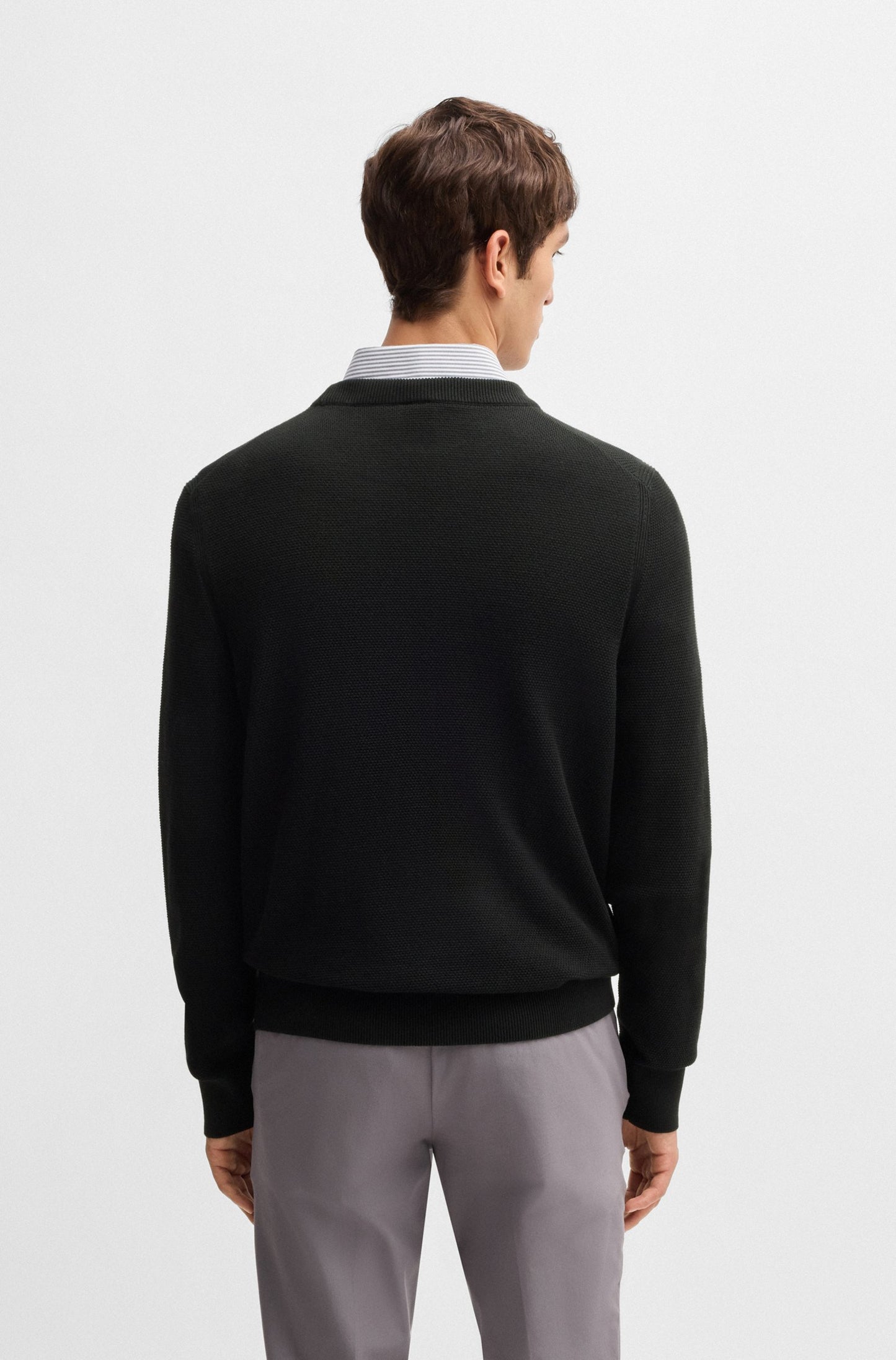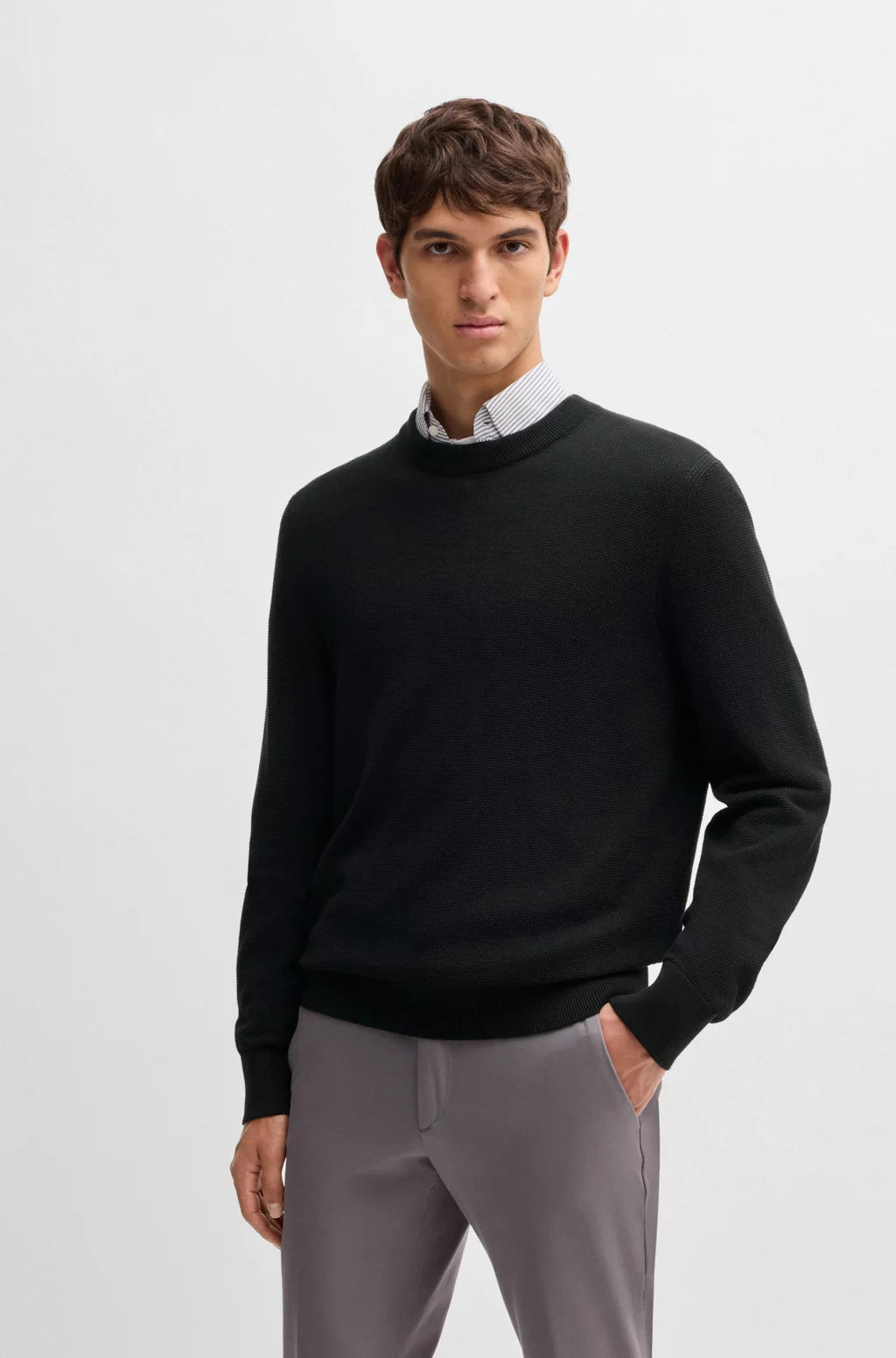 En stilren, sommarlätt tröja från BOSS Herr. Stickad med en detaljerad struktur. Regular fit och rund halsringning. Tillverkad av ekologisk bomull. Vår standard för ekologisk produktion tillåter ingen användning av syntetiska gödningsmedel, bekämpningsmedel eller genetiskt modifierade frön.