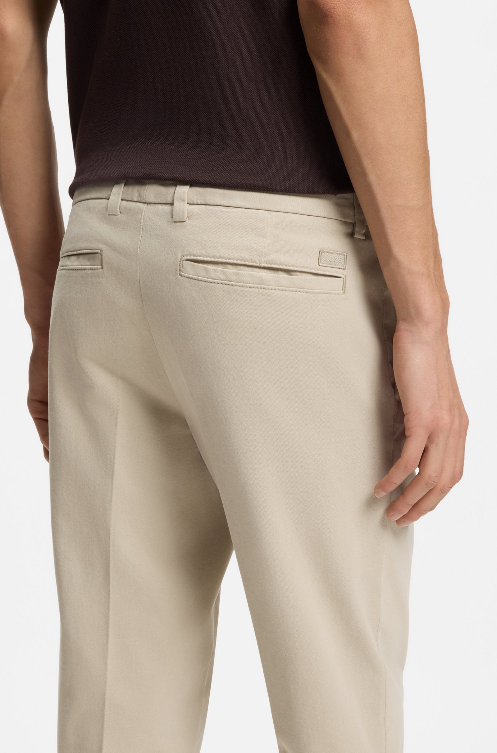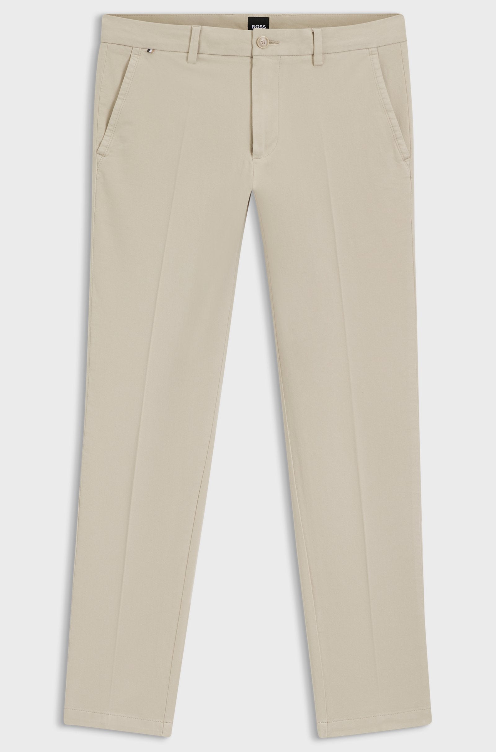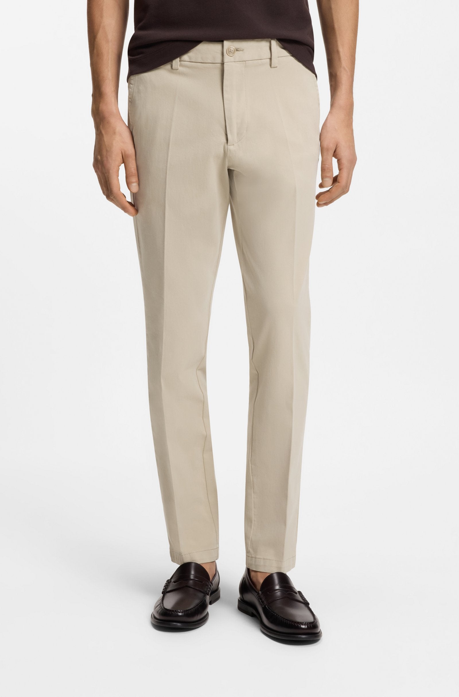 Byxor från BOSS Herr. Design som utstrålar klassisk elegans. Tillverkade i gabardin av bomull och stretch med en mjuk borstad finish. Skurna i en tidlös slim fit. Den här produkten innehåller minst 80% bättre råmaterial. Det här plagget är tillverkat med minst 80% bomull som kommer från ett regenerativt jordbruk. Det regenerativa jordbruket prioriterar att bevara och återställa den naturliga miljön, med en ökad biologisk mångfald, bevarad vattenkvalitet och förbättrad jordhälsa som mål.