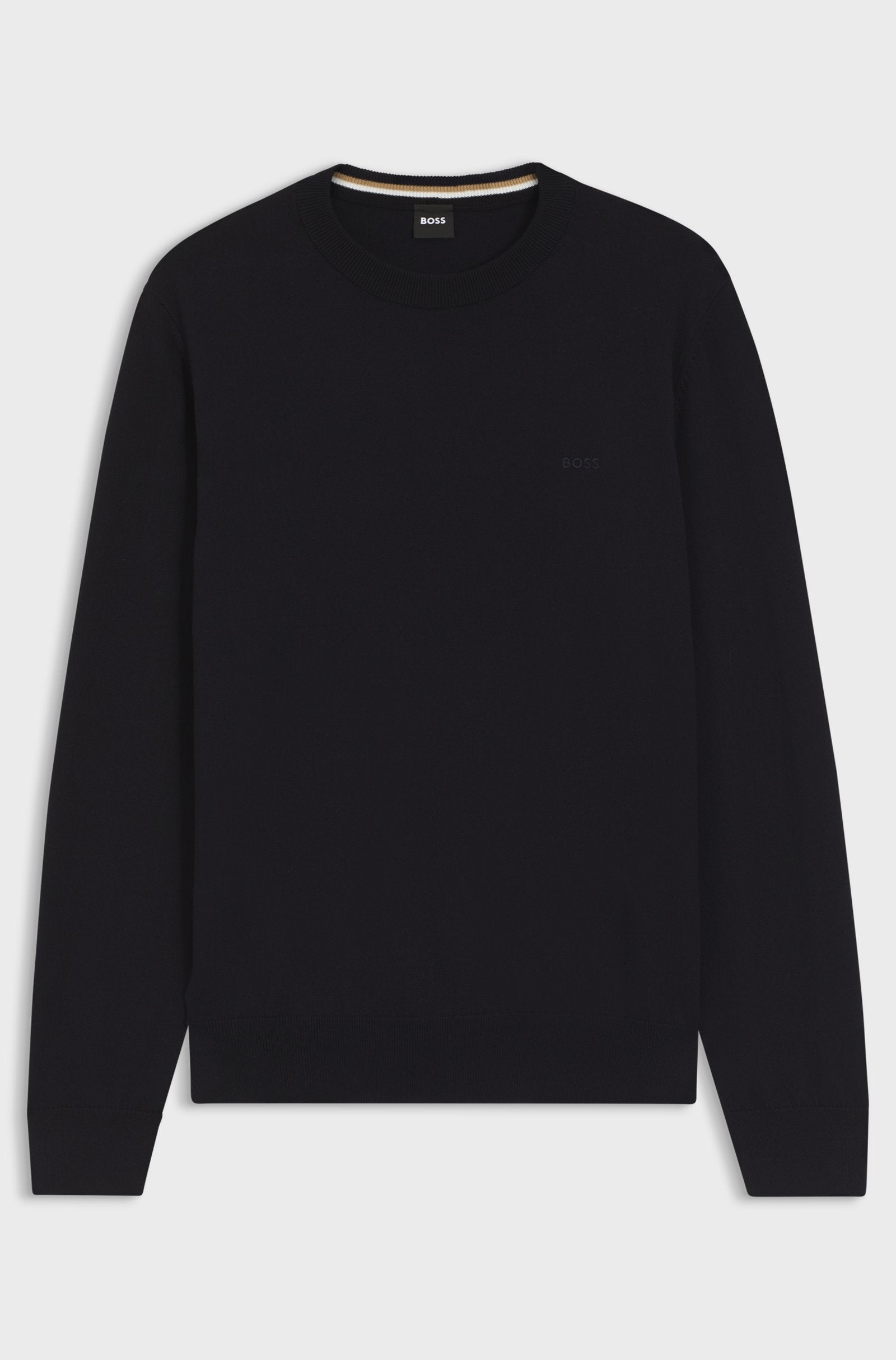 Tröja från BOSS Herr. Ett perfekt lager, tillverkad av mjukt bomullsgarn i regular fit. Broderad med en subtil logga. Den här produkten innehåller minst 80% bättre råmaterial. Det här plagget är tillverkat med minst 80% bomull som kommer från ett regenerativt jordbruk. Det regenerativa jordbruket prioriterar att bevara och återställa den naturliga miljön, med en ökad biologisk mångfald, bevarad vattenkvalitet och förbättrad jordhälsa som mål.
