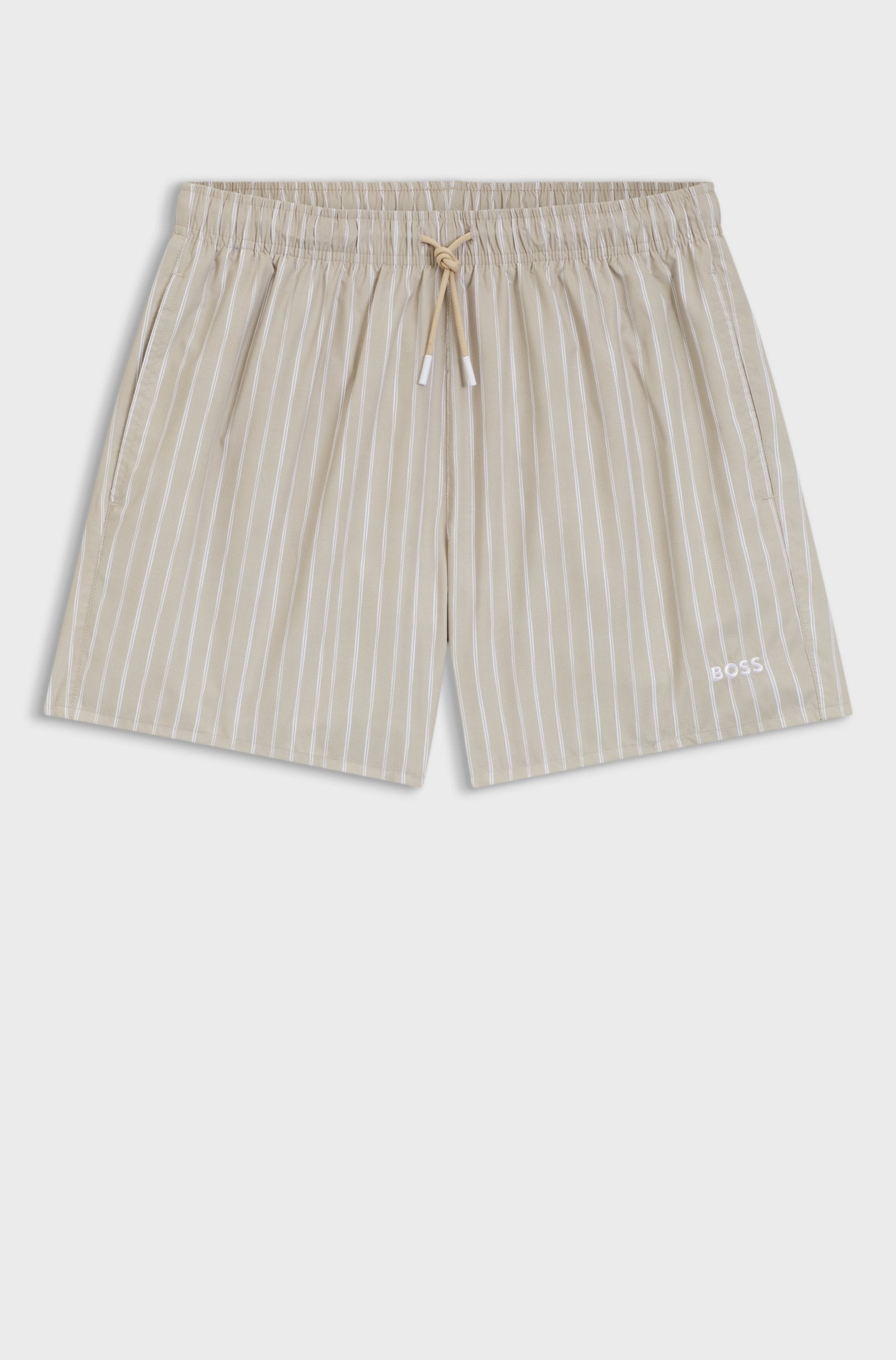 Badshorts från BOSS Herr. Med statement-tryck och en broderad subtil logga. Naturligt snabbtorkande material. Säker blixtlåsförsedd bakficka. Den här produkten innehåller minst 80% bättre råmaterial. Den här produkten är delvis tillverkad av återvunnen polyester. Vi på HUGO BOSS föredrar återvunnen polyester från textilavfall. Vi gör även vårt bästa för att fasa ut polyester från PET-flaskor.