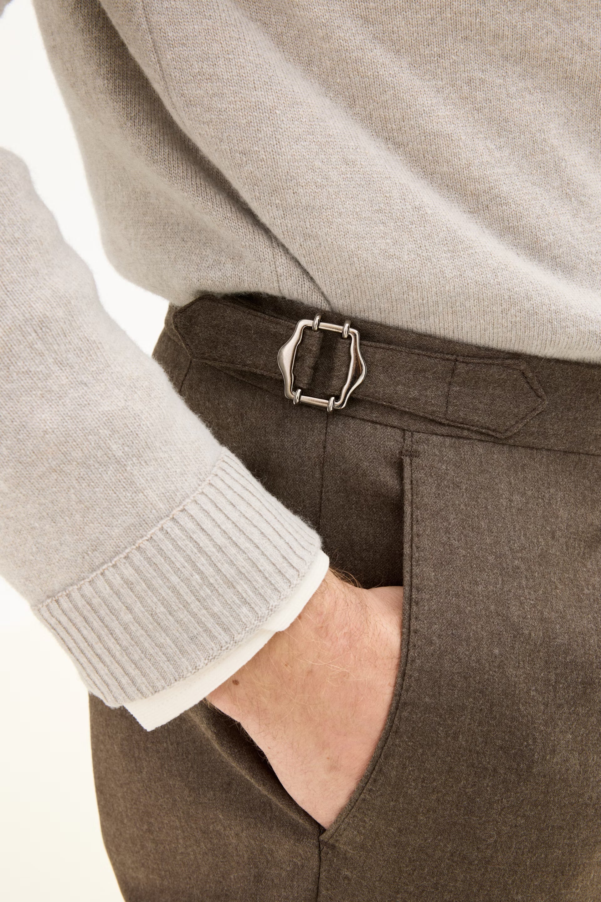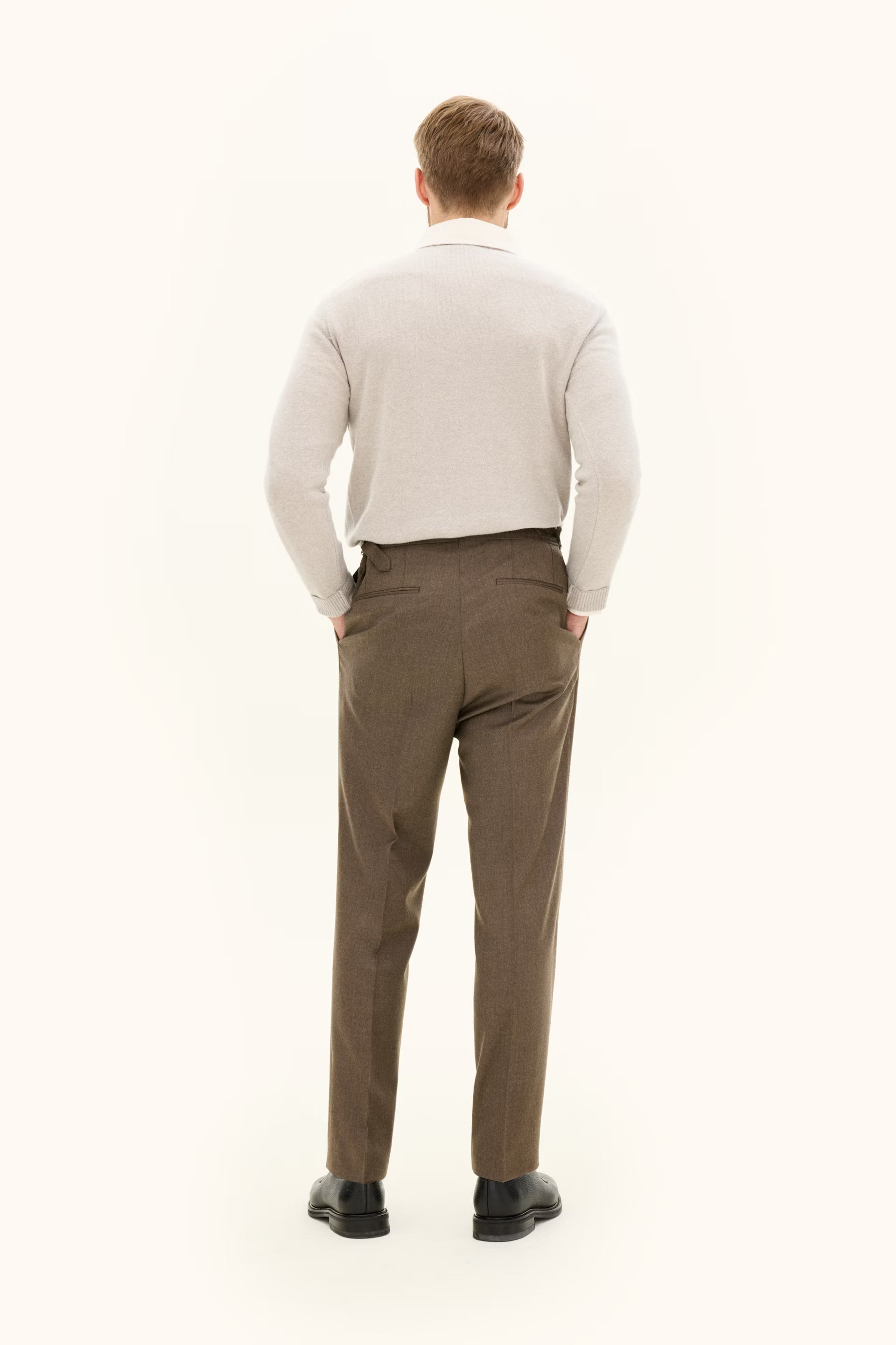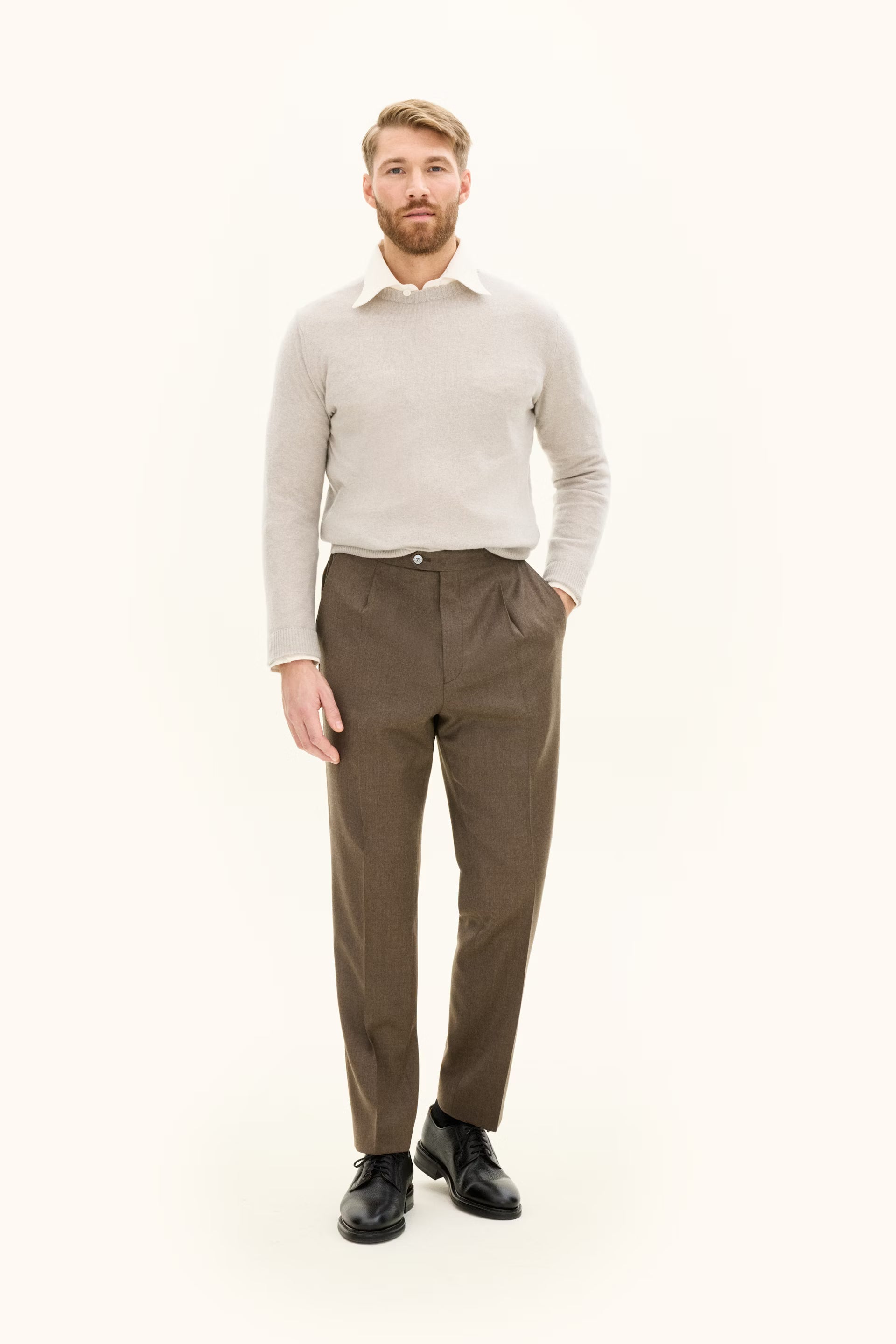 Byxa tillverkad i en exklusiv ullblandning, med en genomarbetad passform i regular fit och hög midja. Ett noggrant utformat plagg som balanserar klassisk skräddarkonst med modern silhuett. Perfekt för såväl professionella sammanhang som lediga tillfällen där stilkänsla prioriteras.