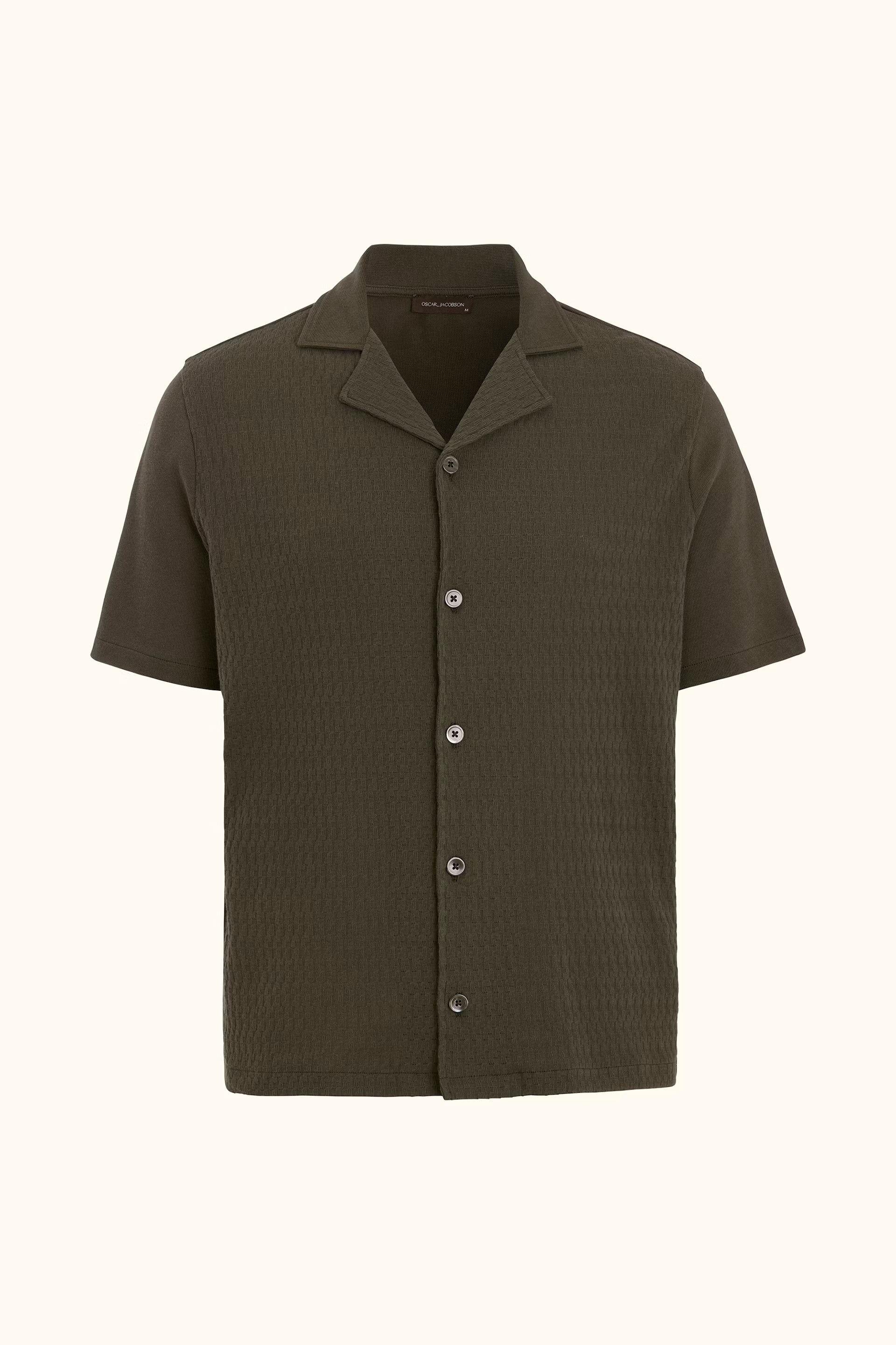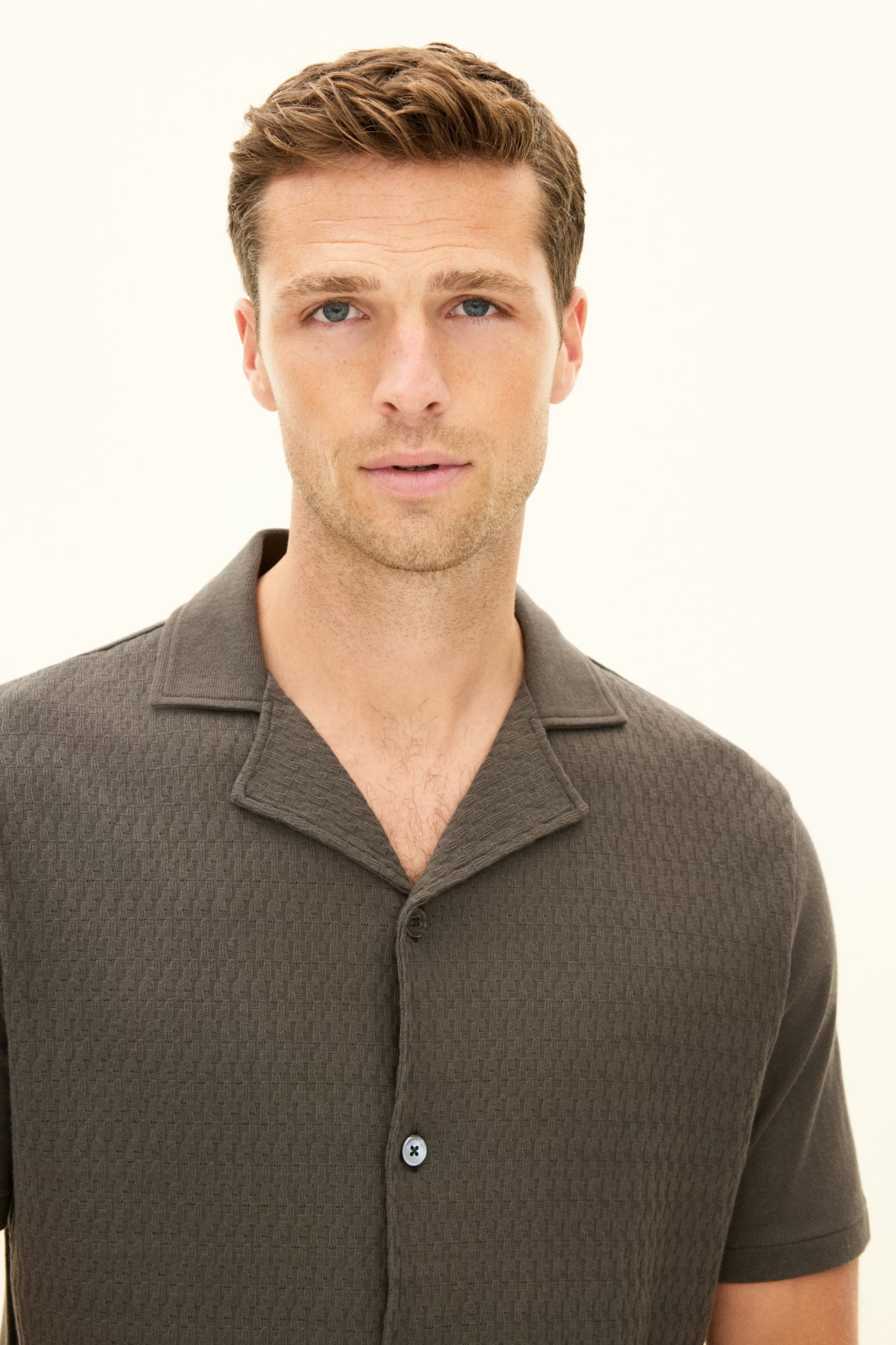 Denna kortärmade stickade skjortan i bomull är tillverkad i bomullsjersey med en elegant struktur framtill och har pärlemorknappar som tillför en sofistikerad detalj. Ett bekvämt och luftigt plagg som är perfekt för varma sommardagar.