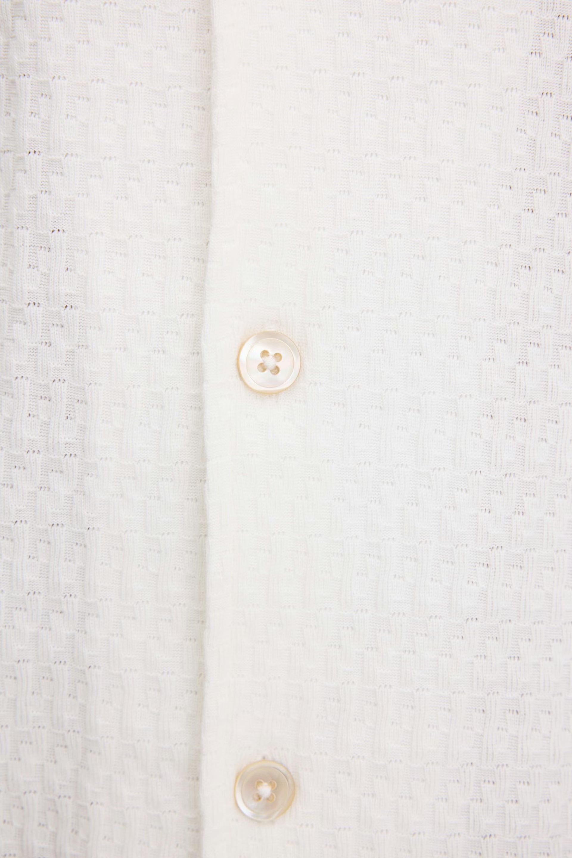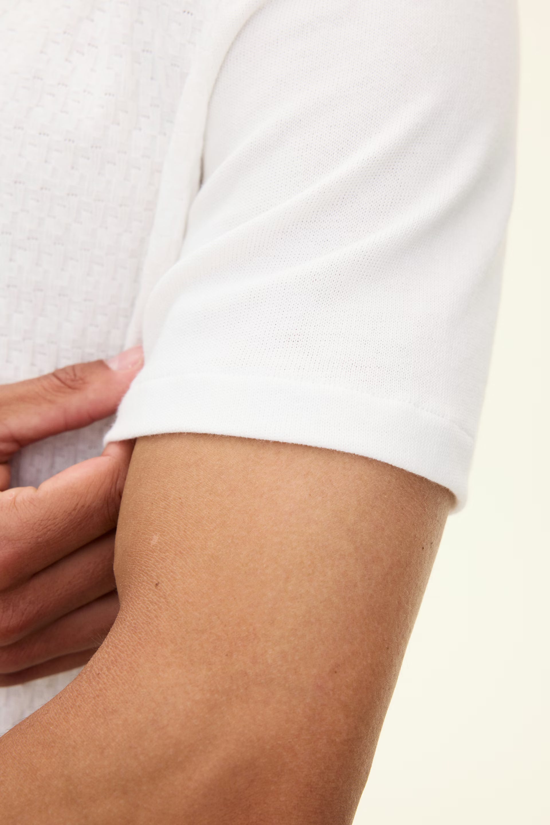 Denna kortärmade stickade skjortan i bomull är tillverkad i bomullsjersey med en elegant struktur framtill och har pärlemorknappar som tillför en sofistikerad detalj. Ett bekvämt och luftigt plagg som är perfekt för varma sommardagar.
