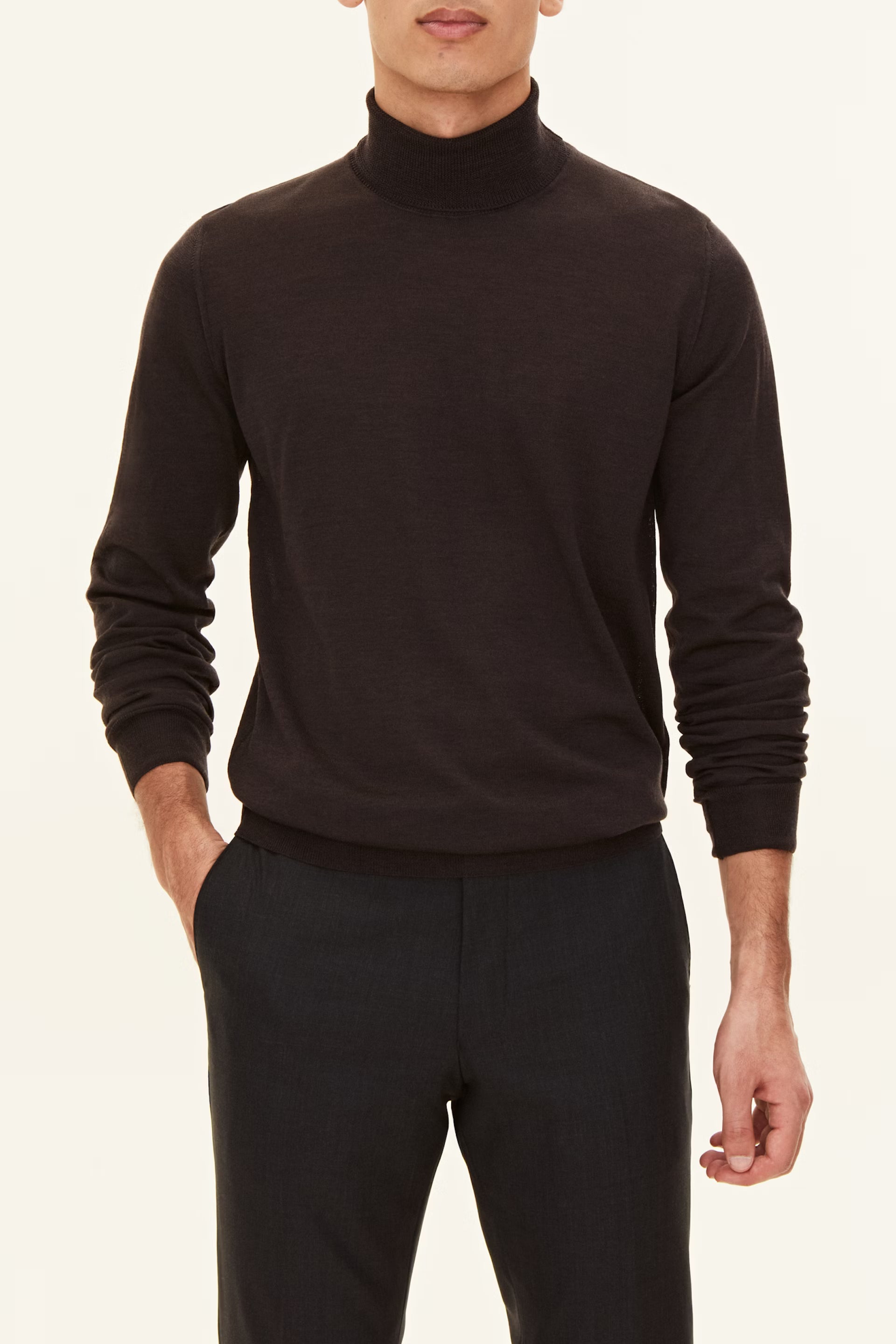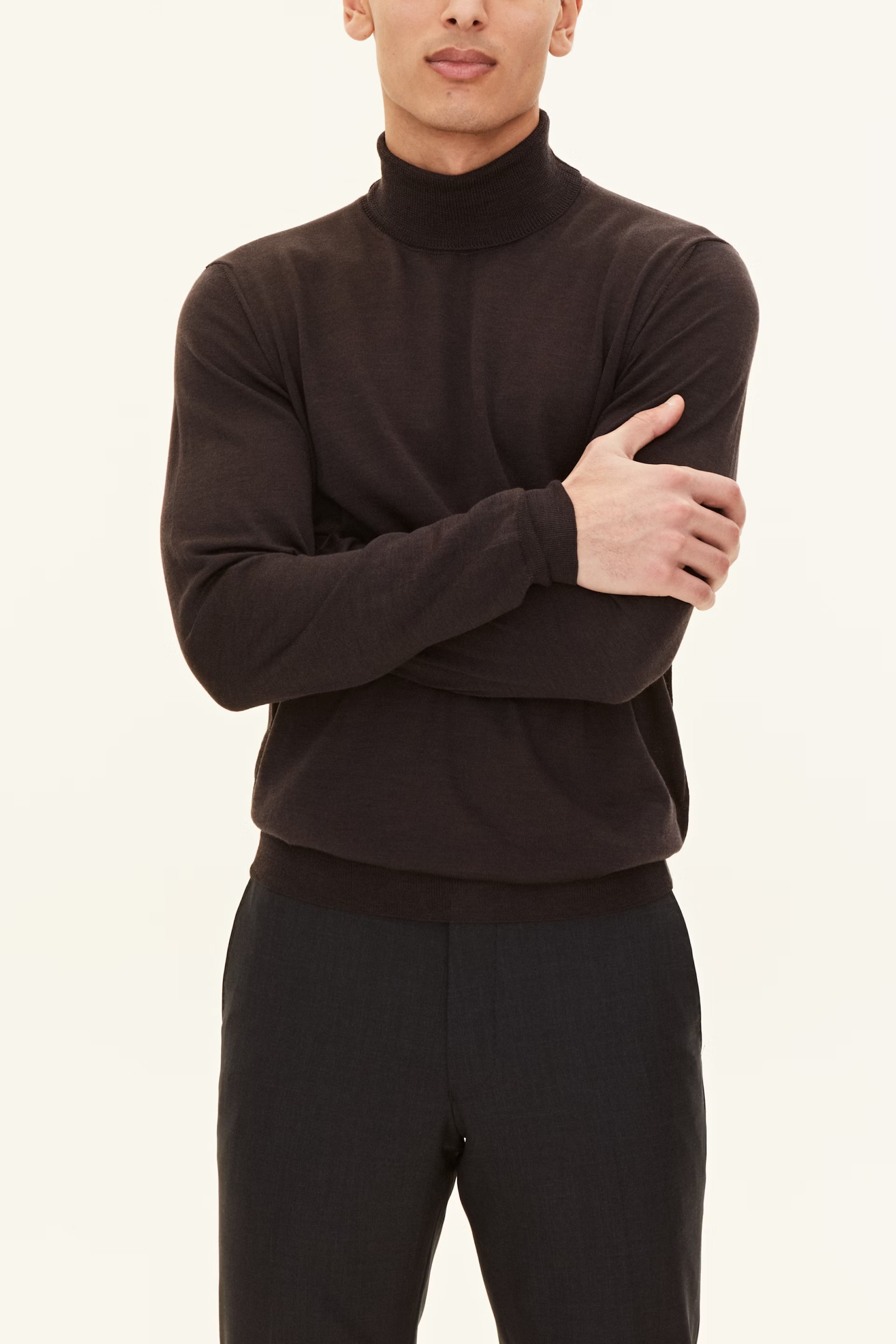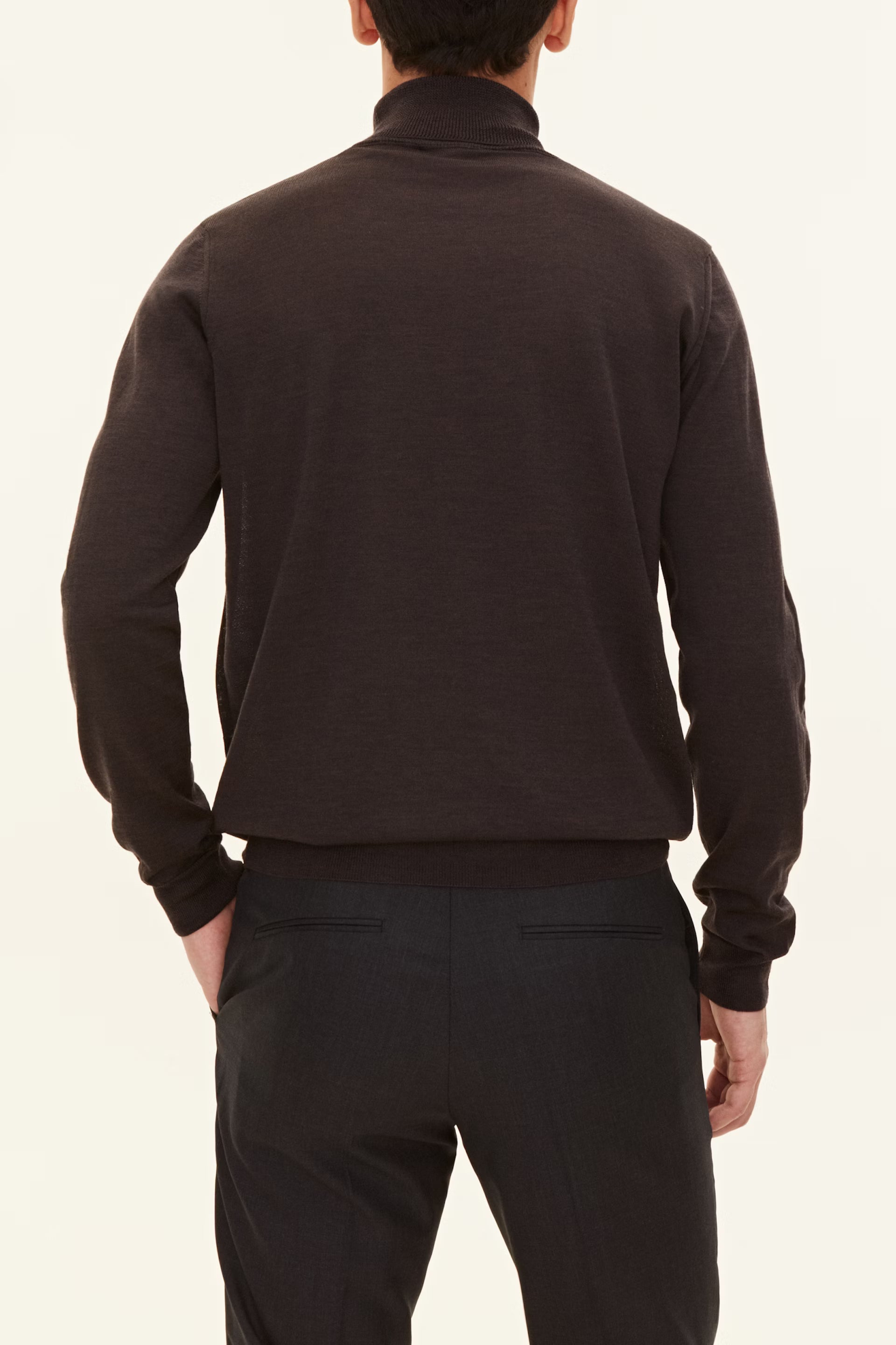 Elegant polotröja i extra fin merinoull från Tollegno, Italien. Den höga kvaliteten på de långa ullfibrerna ger tröjan en lyxig och lätt glansig yta. Polokragen är stickad med dubbla garner för extra stabilitet. Tröjan är tunt stickad i 14gg, vilket gör den perfekt att bära under en kavaj för en sofistikerad och stilren look.