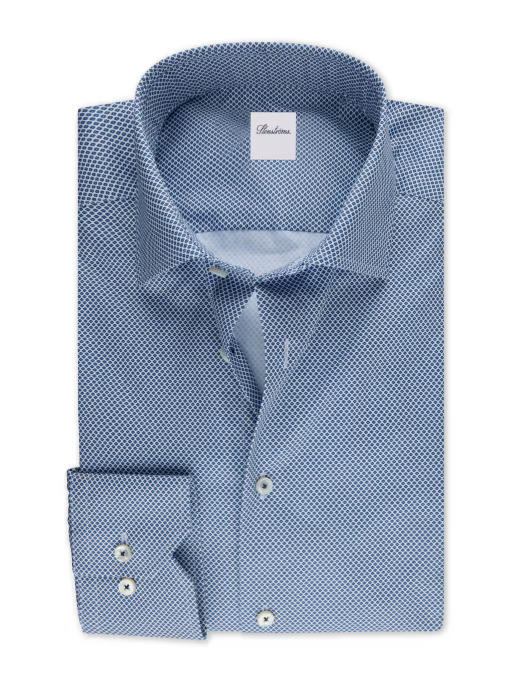 Denna twillskjorta är tillverkad av twofold bomull och har ett mikromönster. Skjortan har pärlemorknappar, enkla manschetter och en cut away krage.