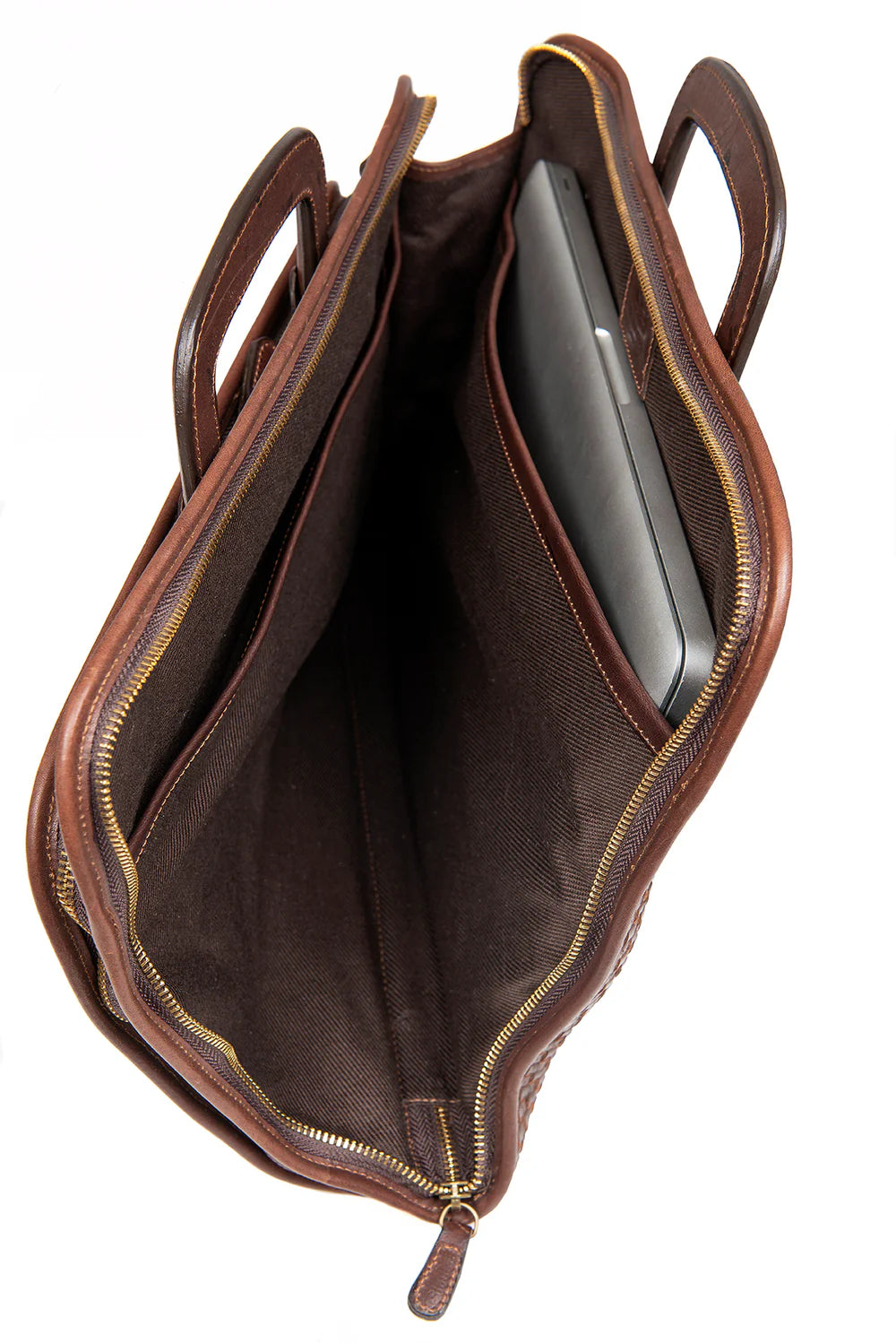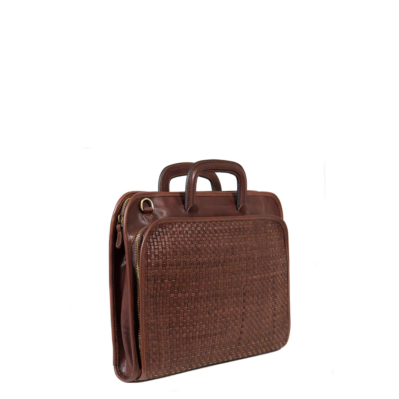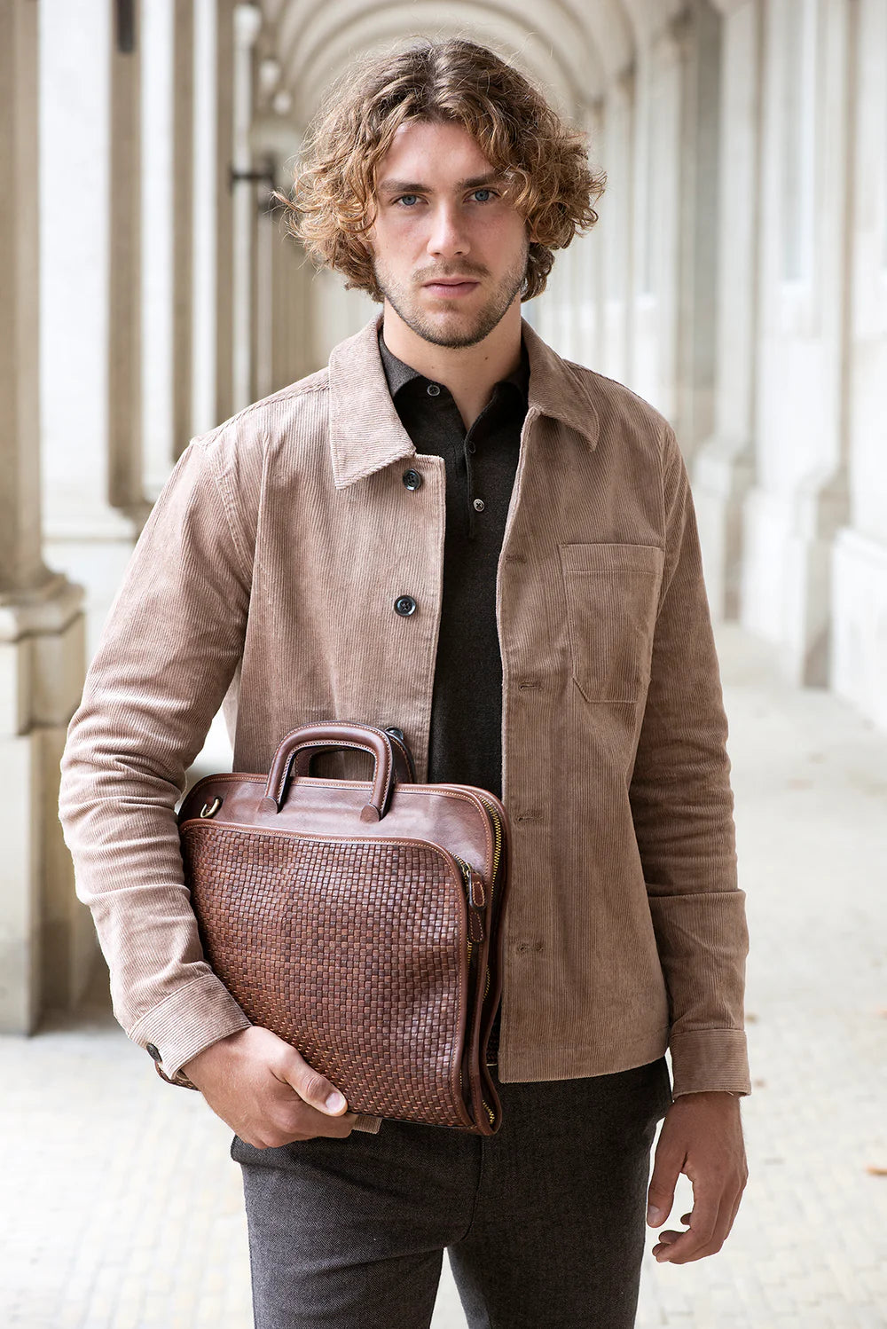 Portfölj tillverkad i Italien av exklusivt italienskt flätat vachettaläder. Väskan är designad med flera fack för dina viktiga dokument och plats för en bärbar dator som rymmer upp till 15 tum. Klassisk och tidlös svensk design med vegetabilisk garvning som kommer ge lädret unika drag och bli finare för varje år som går. Ett perfekt val för den moderna affärsmannen/-kvinnan där högsta kvalitét och hantverk ligger i nivå med deras business.