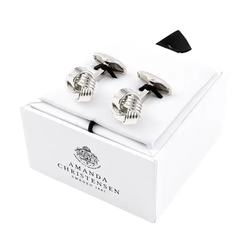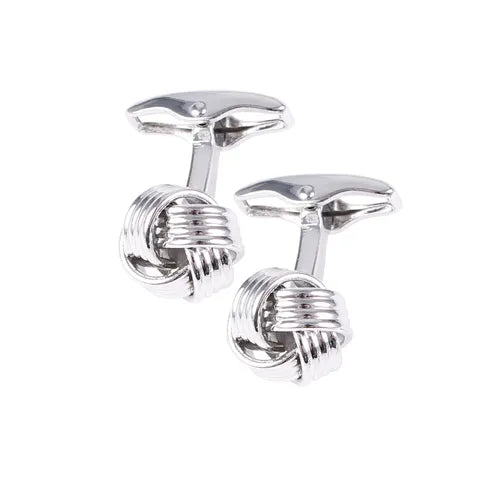 Cufflinks in nickel-free brass featuring an elegant knot motif – a stylish detail that adds a refined touch to any dress shirt. The polished silver-tone finish and three-dimensional design create a sophisticated look suitable for both business wear and formal occasions. The knot symbolizes timeless craftsmanship and classic style. Made from durable, nickel-free material for all-day comfort. A perfect choice for weddings, dinners, and ceremonial events – or as a tasteful gift for the style-conscious gentleman. Delivered in a practical gift box. Easy to coordinate with a tie, bow tie, or pocket square for a complete look.