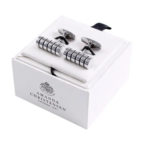 Distinctive cufflinks in nickel-free brass featuring a cylindrical shape and horizontal grooves – a modern design with an industrial edge that adds character to both everyday and formal shirts. The symmetrical form and textured surface create a striking yet refined impression. Crafted from durable, skin-friendly material for comfort and long-lasting wear. The contemporary silhouette pairs well with a sleek suit or tuxedo and suits both business settings and special occasions. Delivered in an elegant gift box – a bold accessory for the style-conscious gentleman.