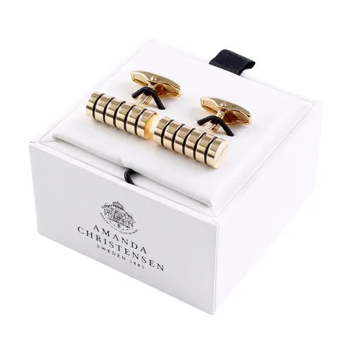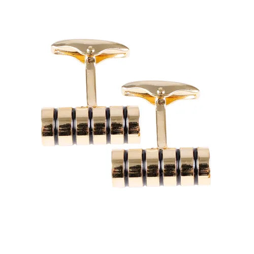 Distinctive cufflinks in nickel-free brass featuring a cylindrical shape and horizontal grooves – a modern design with an industrial edge that adds character to both everyday and formal shirts. The symmetrical form and textured surface create a striking yet refined impression. Crafted from durable, skin-friendly material for comfort and long-lasting wear. The contemporary silhouette pairs well with a sleek suit or tuxedo and suits both business settings and special occasions. Delivered in an elegant gift box – a bold accessory for the style-conscious gentleman.
