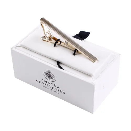 Sleek tie clip in nickel-free brass with a smooth, polished surface and classic design. A functional yet refined accessory that keeps your tie in place while adding a sophisticated detail to your outfit – whether for work, weddings, or formal events. Crafted from skin-friendly, durable material for lasting wear. Its understated style makes it easy to pair with both solid and patterned ties. Delivered in an elegant gift box – a perfect gift or a timeless addition to your own accessory collection.