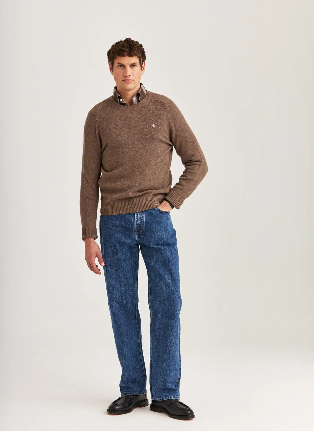 The Hertford collection is made from brushed merino wool, giving the fabric a soft, lambswool-like feel – airy yet with a certain weight. The Hertford Oneck features a classic crew neck, ribbed hems, and elegant fully-fashioned details. Its slightly straighter silhouette offers a more relaxed fit compared to Morris classic merino wool collection, adding a laid-back yet refined touch. With endless styling possibilities, the Hertford Oneck sweater effortlessly elevates any outfit with its simplicity and subtle elegance. Pair it with tailored suit trousers for a smart look, or combine it with blue jeans or chinos for a more casual approach. Choose a bold color and drape it over the shoulders of a classic tweed blazer for a preppy twist.