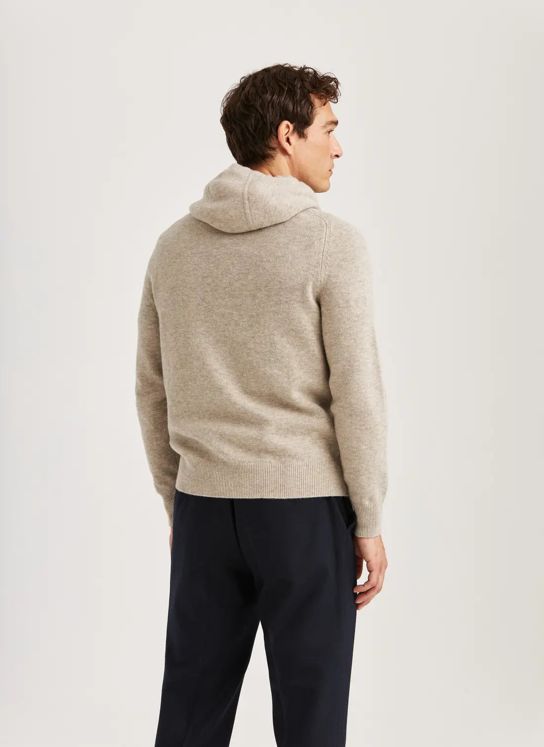 The Hertford Hood is a sophisticated hoodie crafted from brushed merino wool, offering a soft, luxurious feel with a subtle weight. The brushed texture of the material provides a warm, lambswool-like sensation, making the sweater ideal for cooler months. With its more relaxed silhouette and sleek hood, the Hertford Hood is the perfect piece for a weekend getaway. Style it with chinos or tailored trousers for a smart-casual men's look.