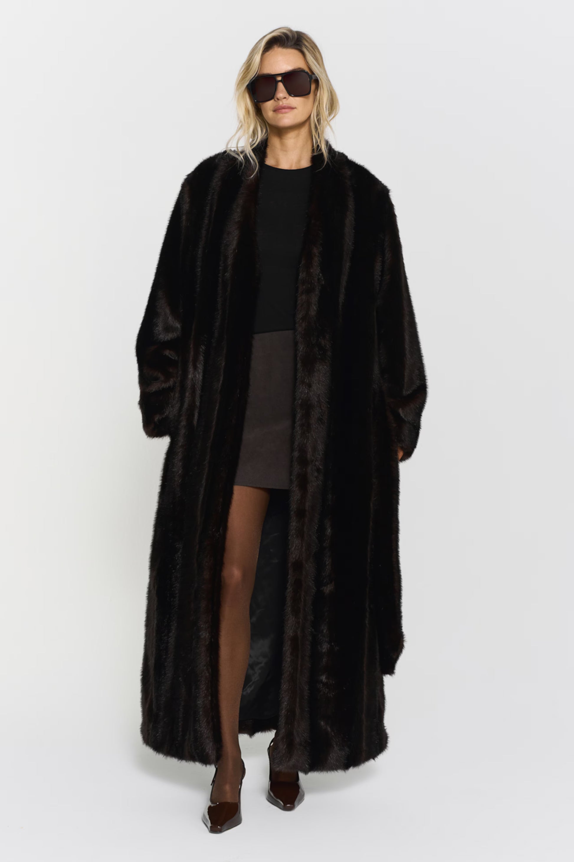 The model is 171 cm tall and wears size S. The Vaujany Faux Fur Coat features soft faux fur, oversized fit and fully lined, this stylish jacket is perfect for elevating your cold-weather wardrobe.