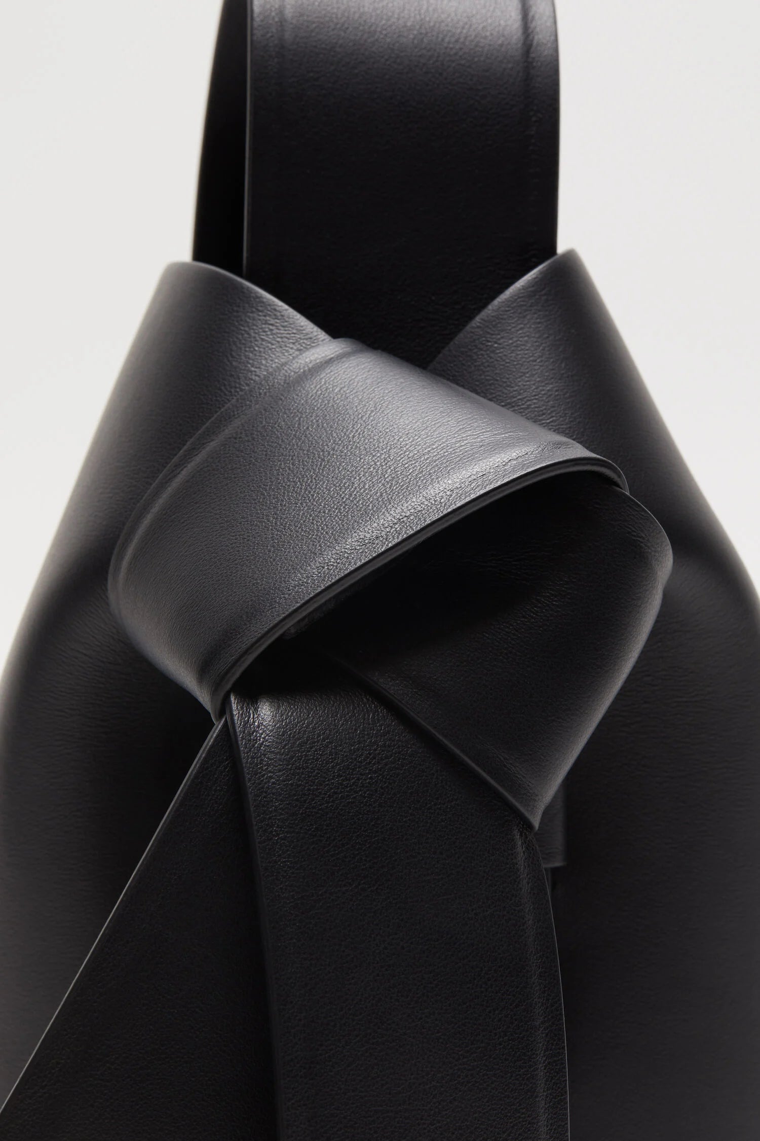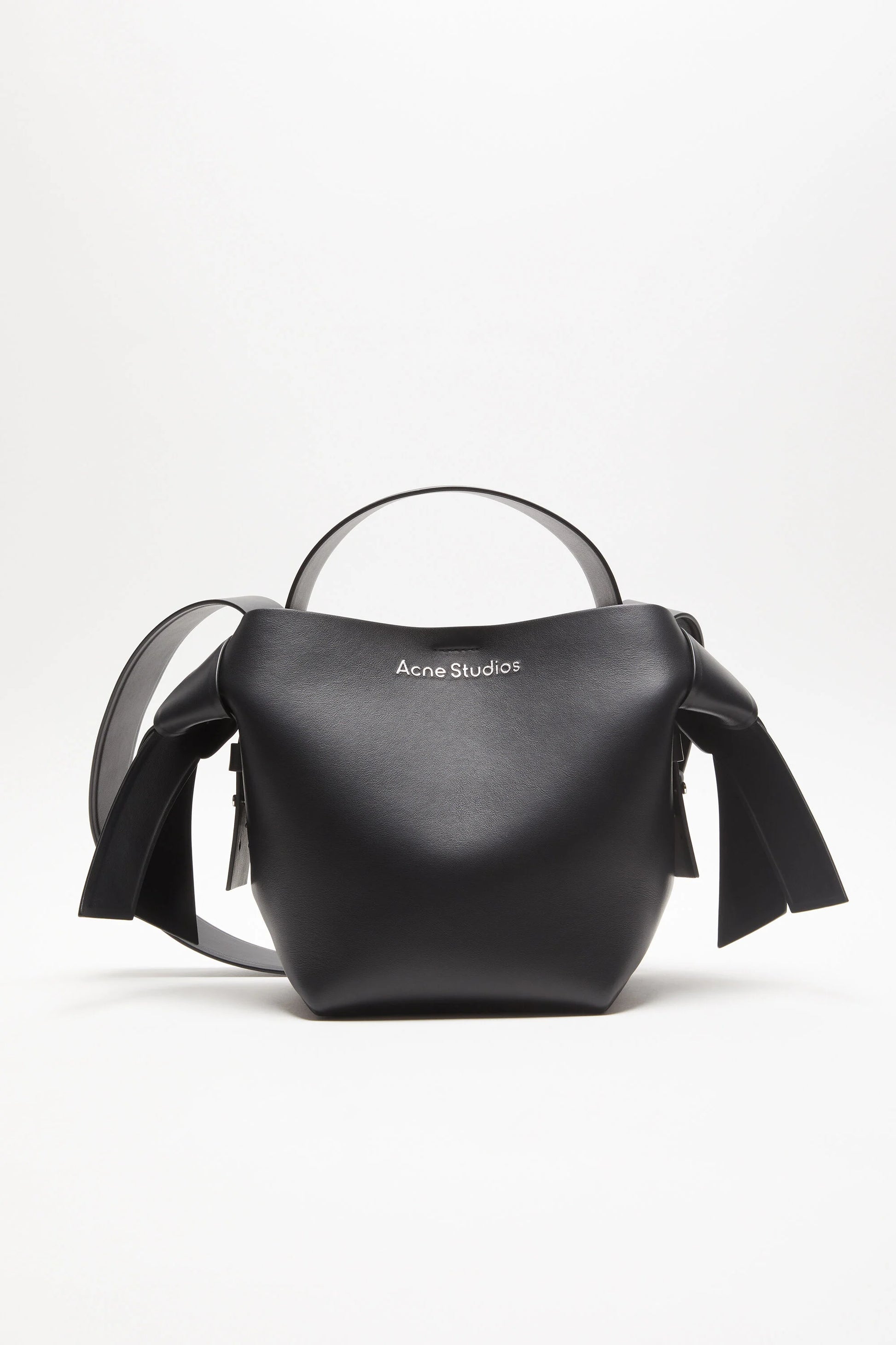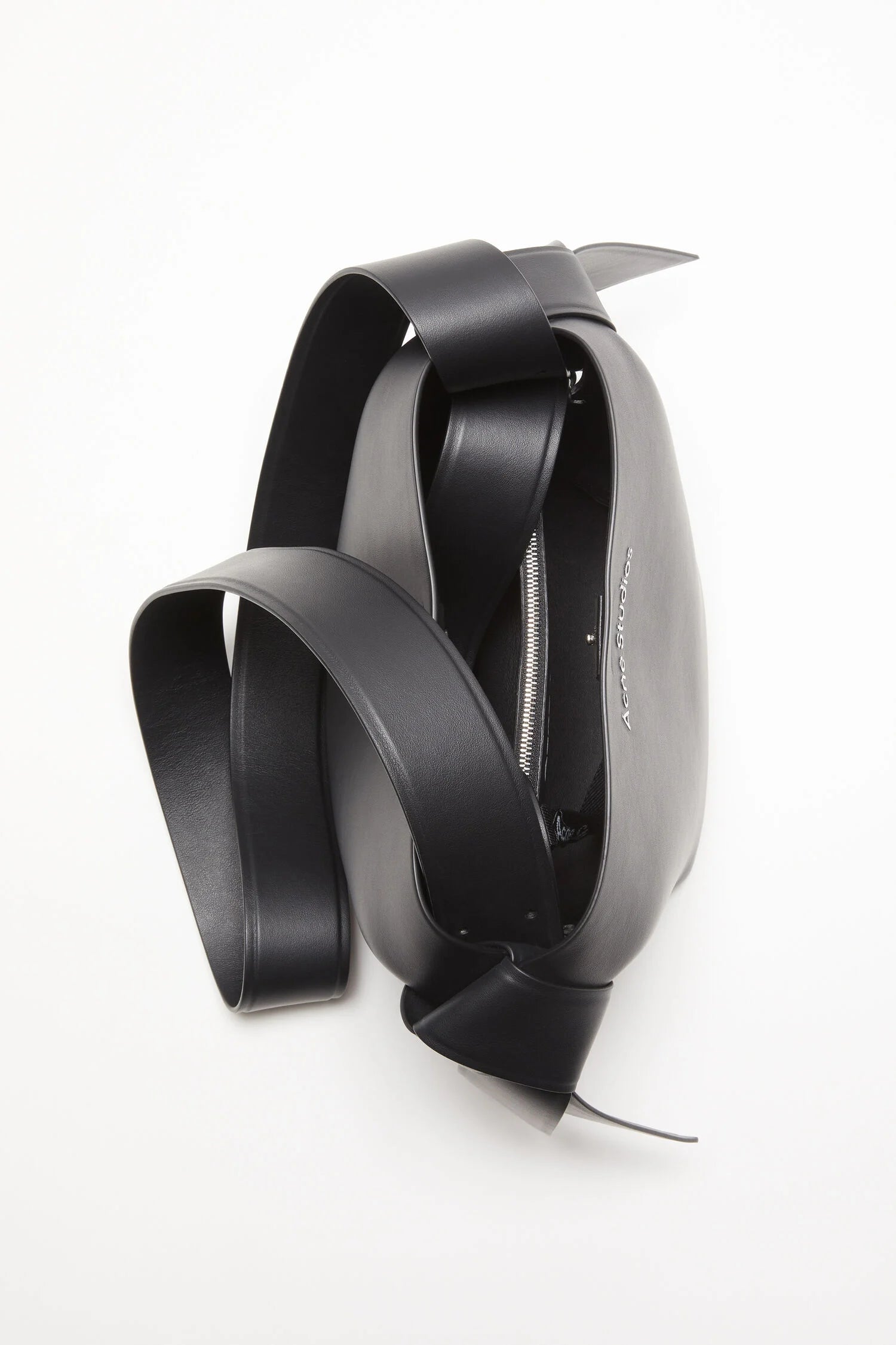 Mini shoulder bag is adorned with twisted musubi knots on each side, inspired by traditional Japanese obi sashes. Crafted from soft leather, detailed with a debossed Acne Studios logo. Completed with a middle zippered pocket compartment and a discrete magnetic closure.
