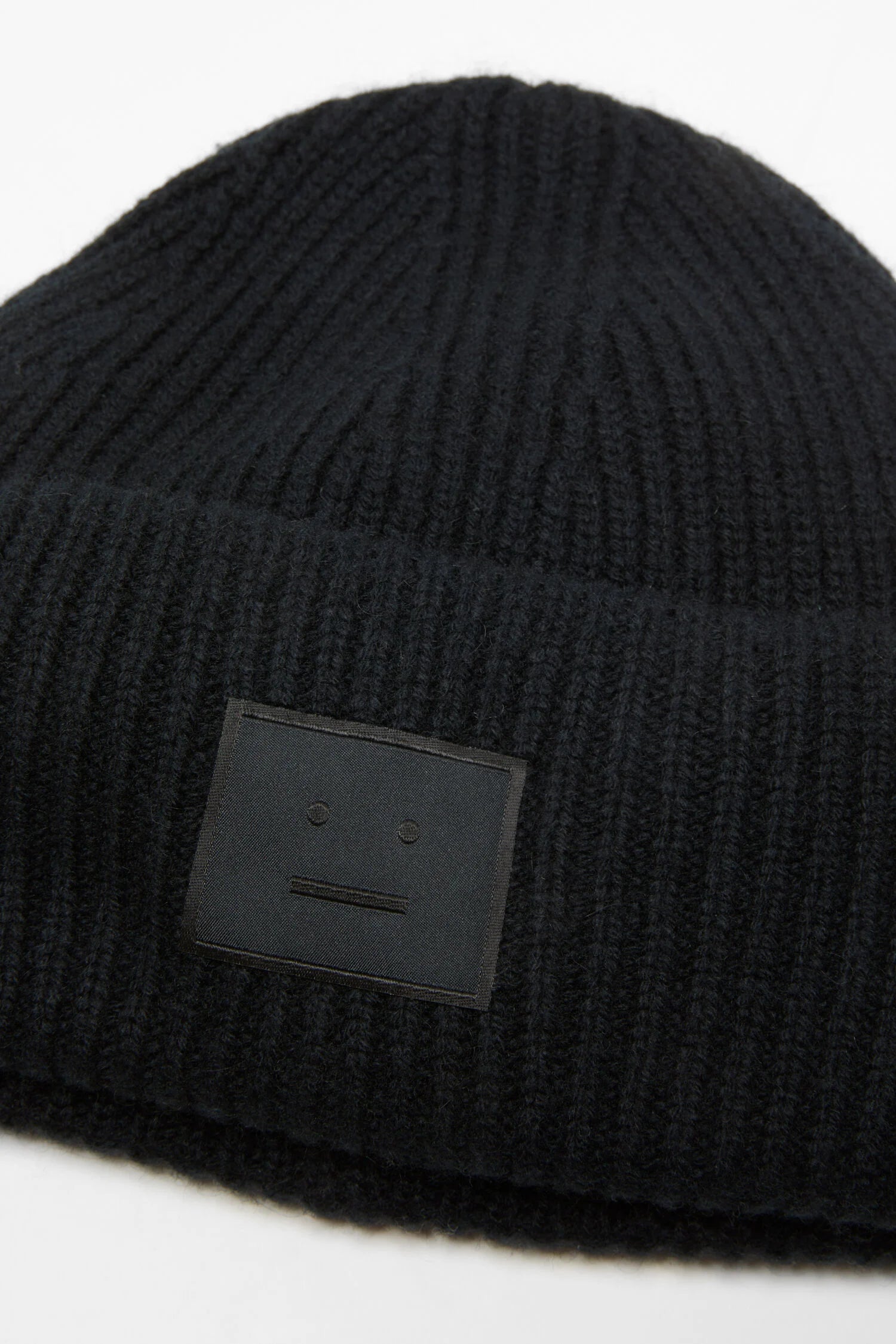 Knit beanie featuring a large embroidered Face logo patch and ribbed detailing, made from carefully selected high-quality yak yarn. Due to the natural characteristics of the fiber, each piece has a unique shade and may vary in color. Handle with care to preserve its original appearance.