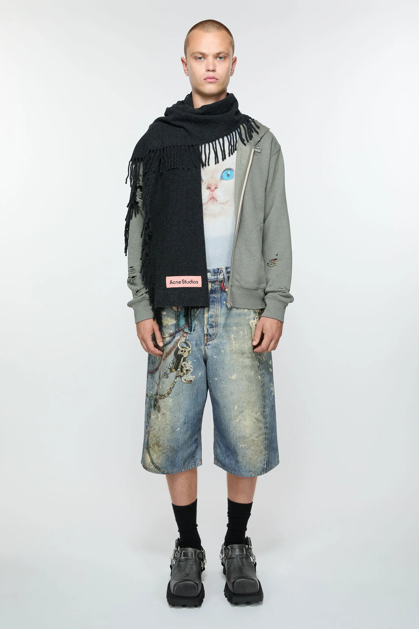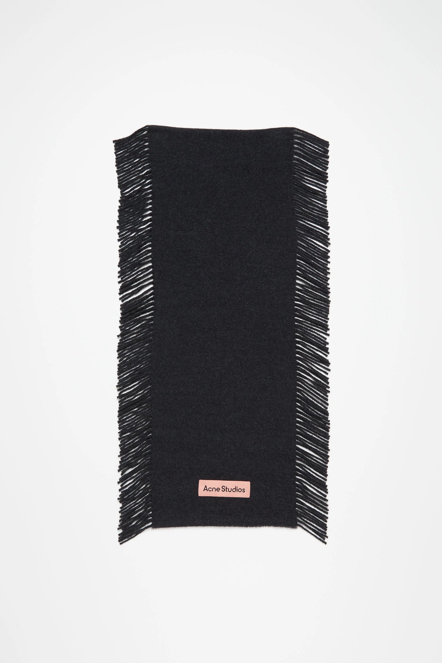 Scarf features long fringe detailing on each side and an Acne Studios pink label. Crafted from midweight wool with a soft hand-feel.
