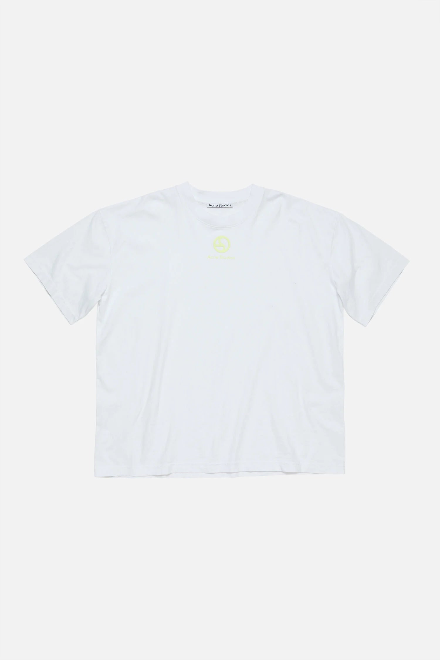 Crewneck, short-sleeve unisex t-shirt in midweight cotton jersey with an irregular, vintage look. Finished with seasonal Acne Studios logo artwork on the front. Cut to a relaxed unisex fit.