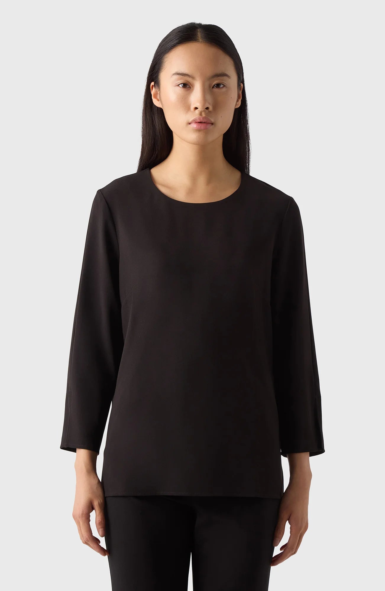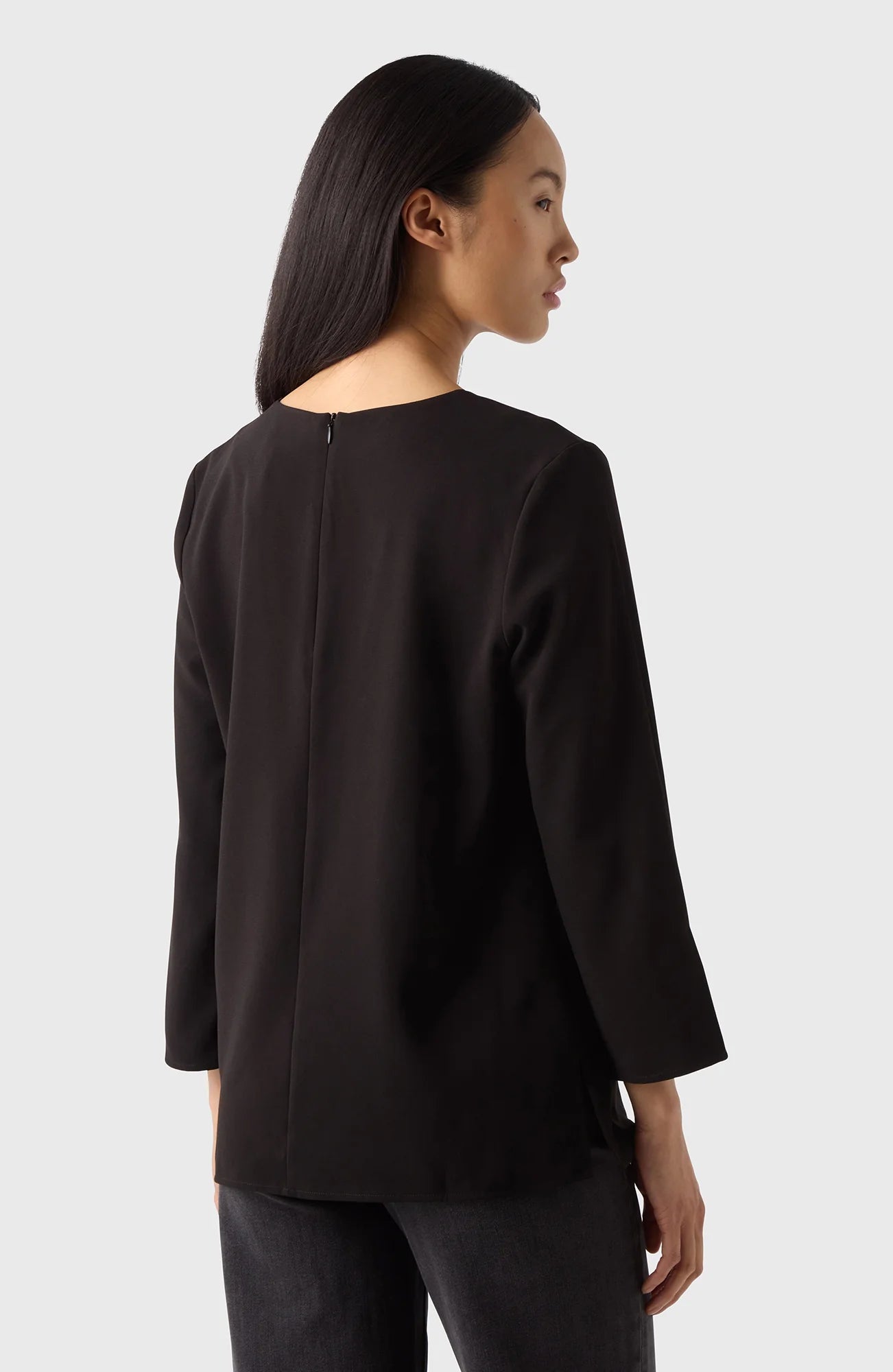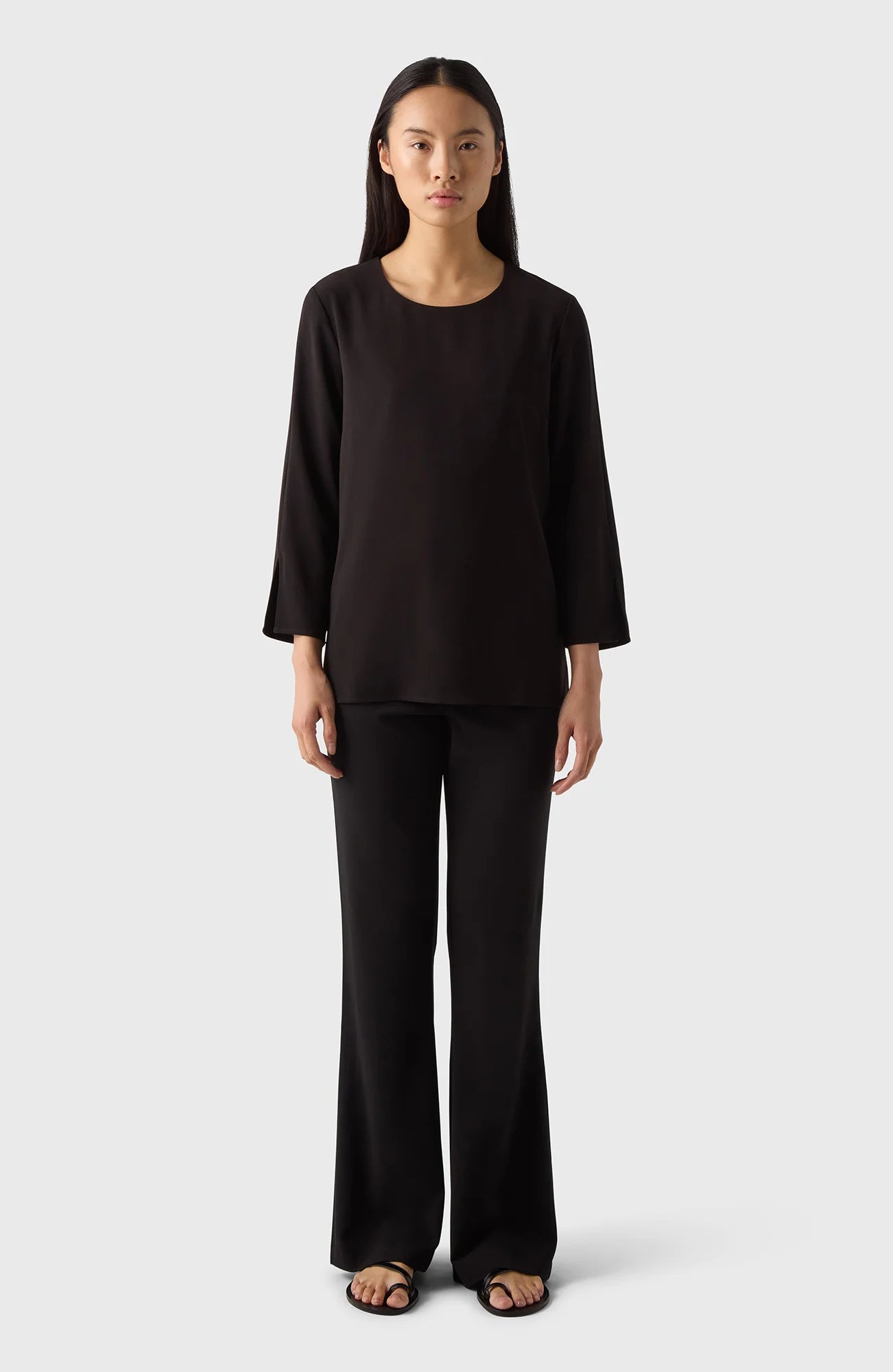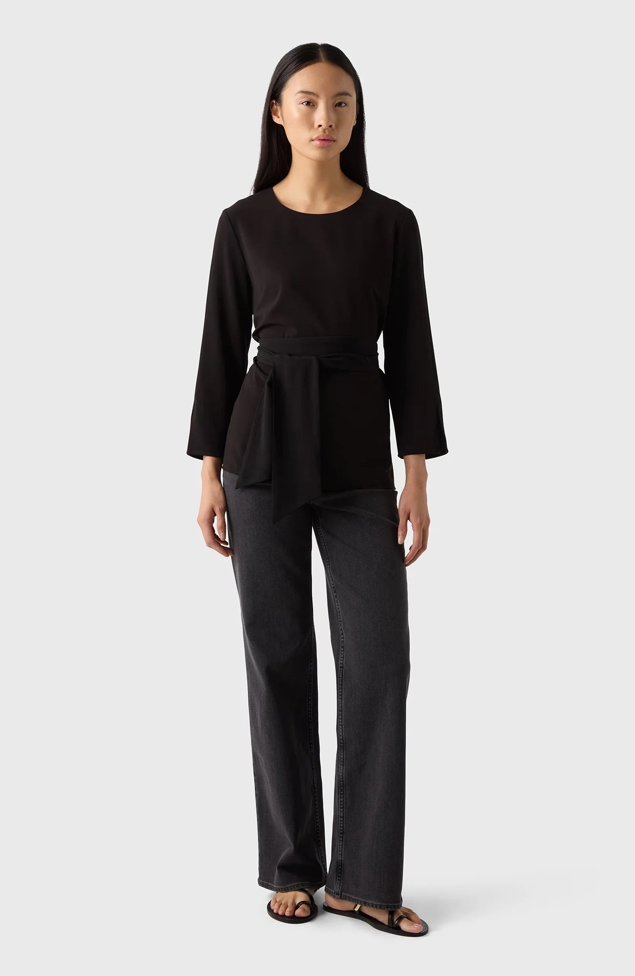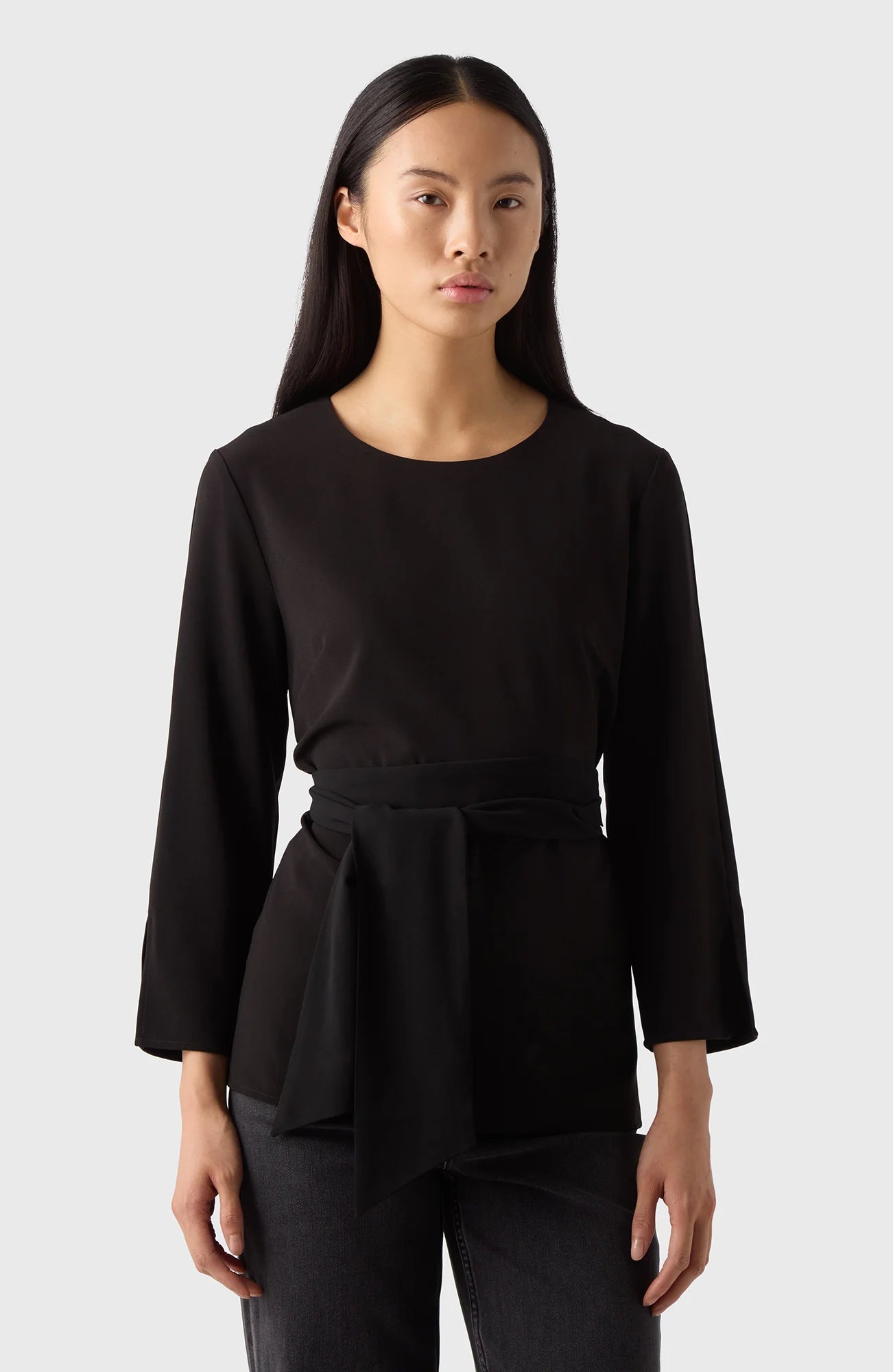 Ella är rundhalsad och har en 3/4-ärm med dekorativ slits vid ärmslutet. Det medföljande bältet gör Ella enkel att styla på olika sätt. För en feminin och tidlös styling, knyt bältet runt midjan, eller bär det som en scarf kring halsen. Ella är gjord i en skrynkelfri crêpe som gör henne till en favorit i resväskan.