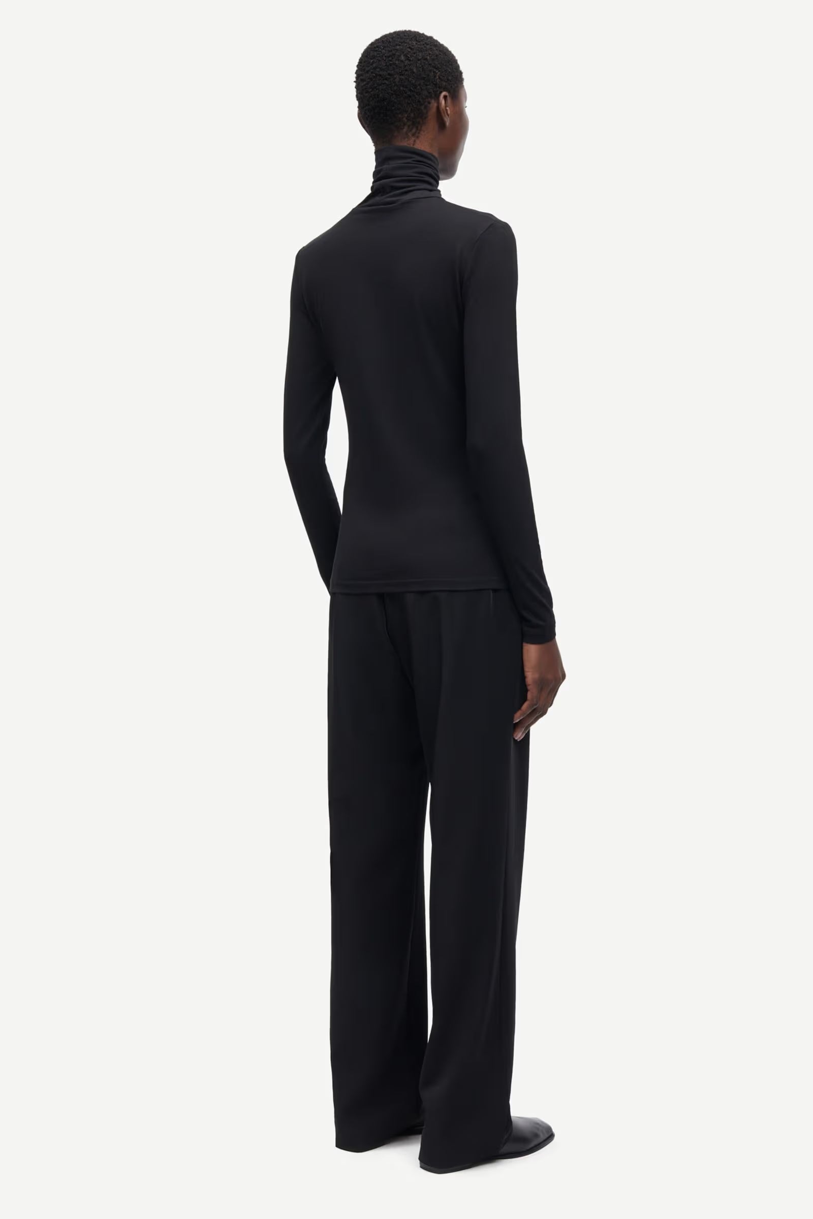 This turtle neck T-shirt is cut with a slim fit making it perfect for layering underneath other styles. The soft cotton and modal jersey fabric has added stretch to support the slender silhouette of this versatile roll neck tee.
