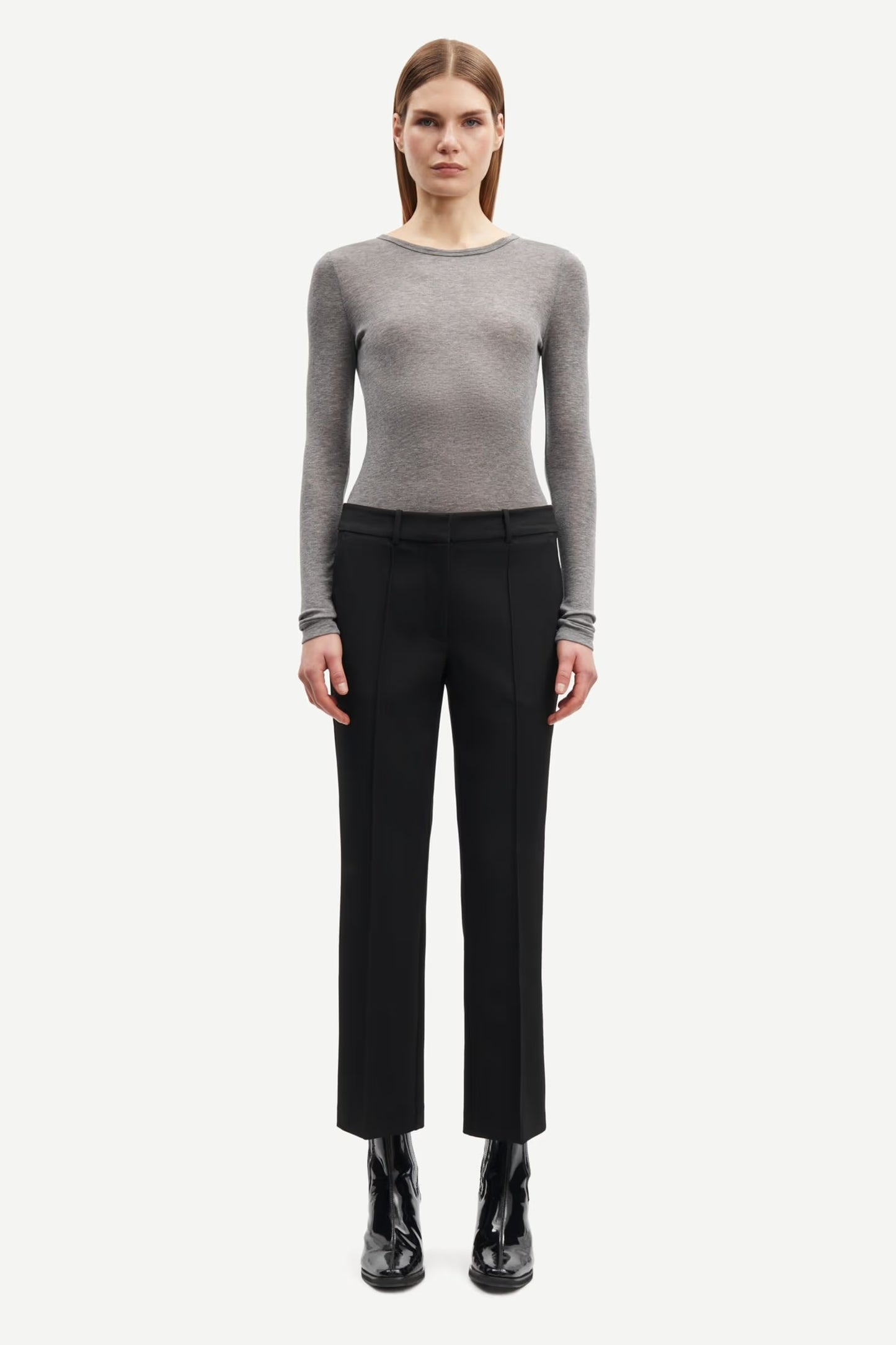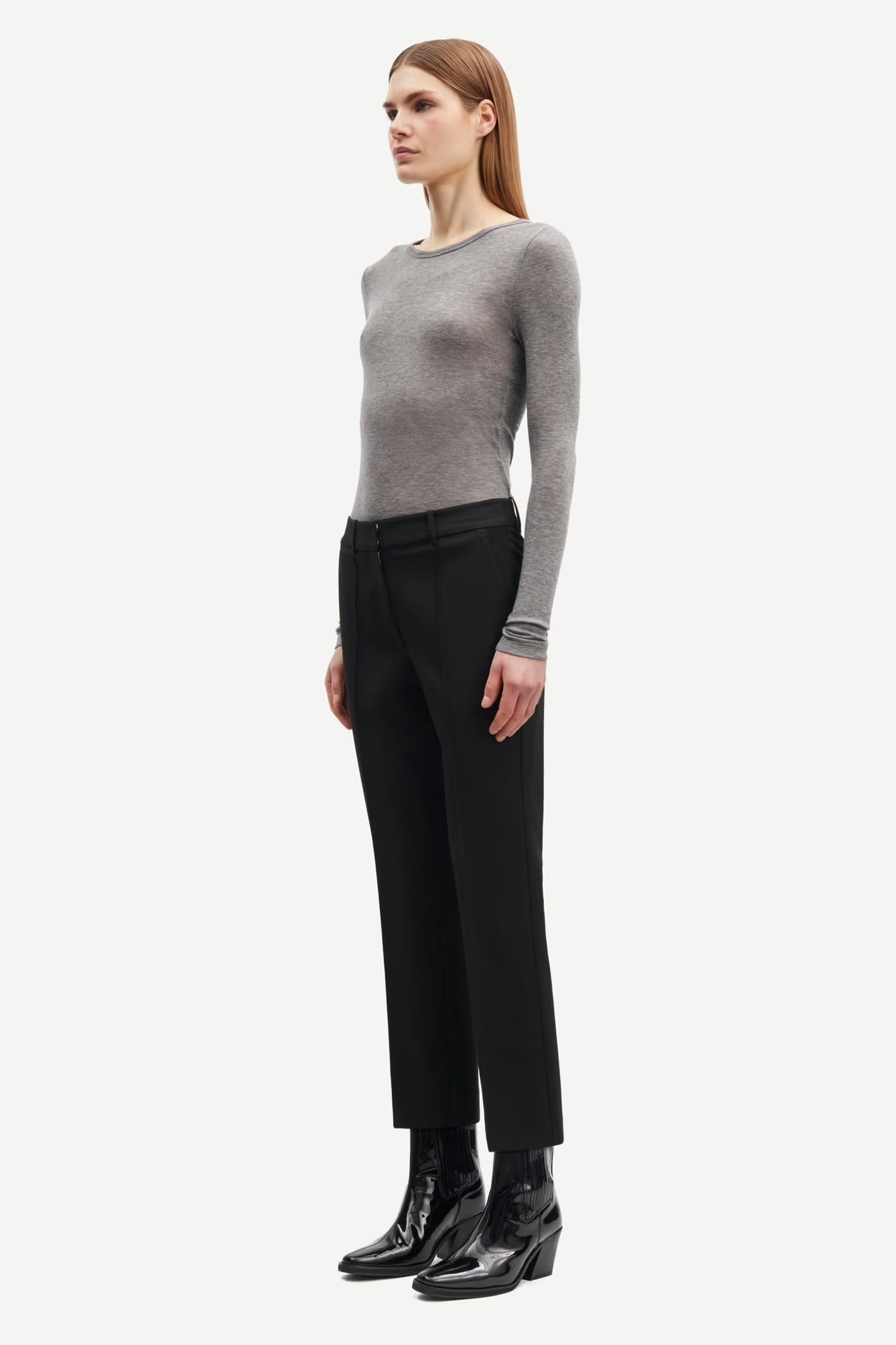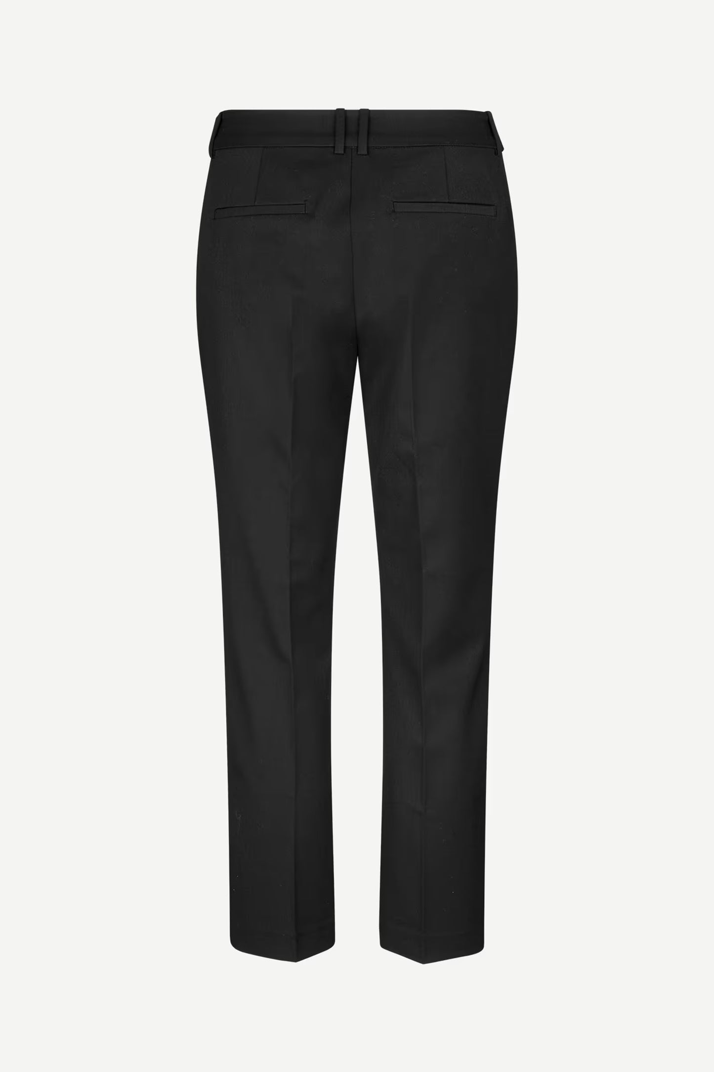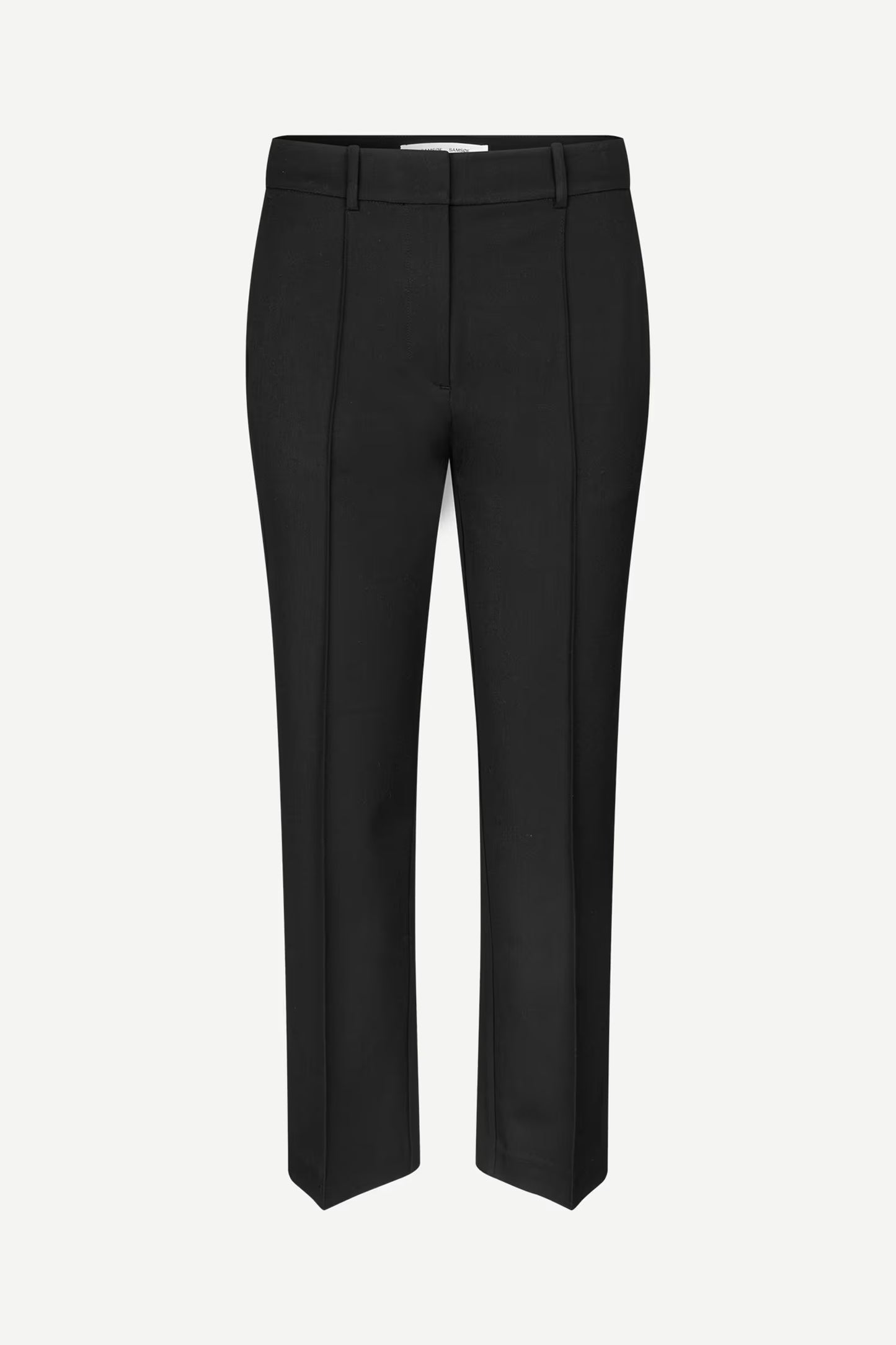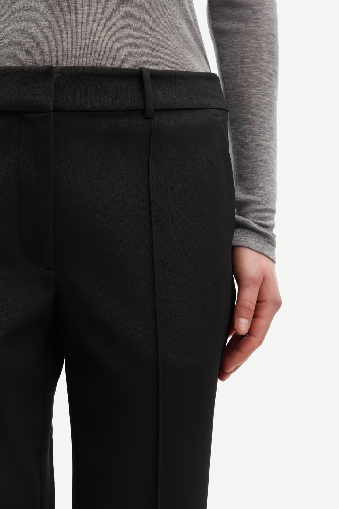 Mid-waist trousers with a slim fit and cropped leg. Hidden button and zipper closure at the fly. Side slit pockets on the front and faux welt pockets on the back. Belt loops. Pressed creases at the front and back. Main material made from an elastic blend of recycled polyester.