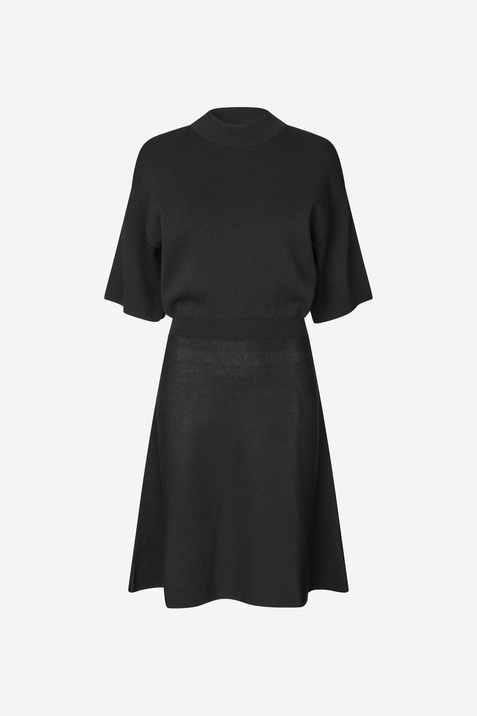 Knitted minidress with a regular fit, fitted waist, and A-line skirt. Rib-knitted collar and waistband. High neck. Main material made from a blend of LENZING™ ECOVERO™ Viscose. This product contains LENZING™ ECOVERO™ Viscose, certified with the EU Ecolabel for textile products (licence no. AT/016/001) for environmental excellence.