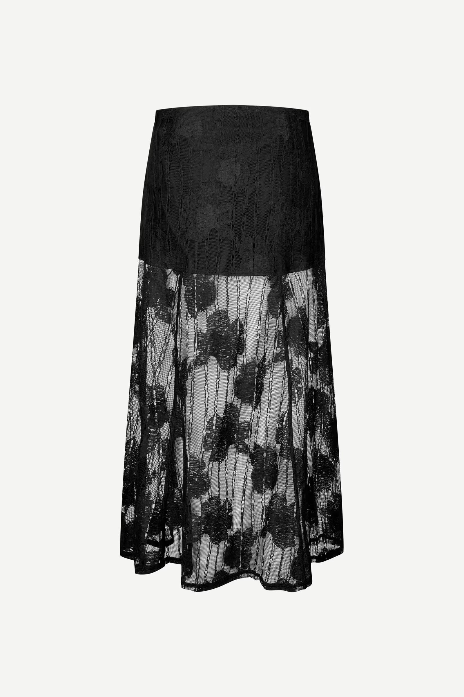 Mesh and lace maxi skirt with a regular fit. Invisible zipper closure at the side. Mid waist. Floral pattern. Partially lined. Main material made from a recycled polyamide-blend.