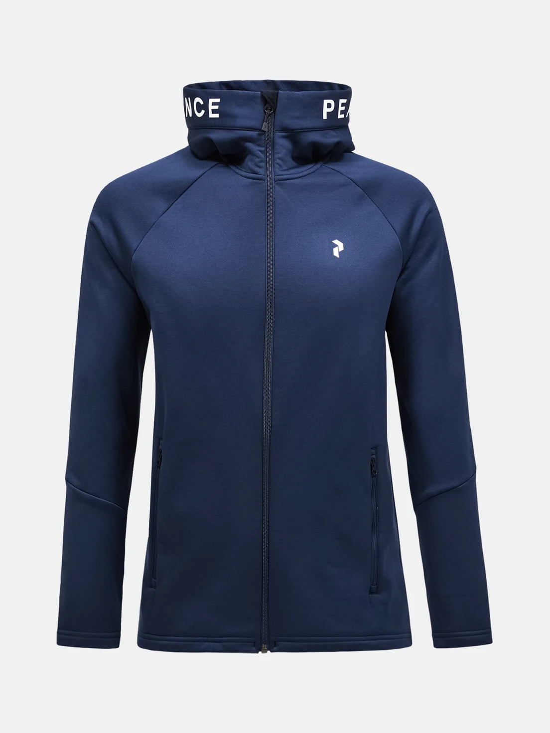 Mjuk mellanlagerjacka med huva som är bekväm, stretchig och perfekt för friluftsliv. Tack vare det snabbtorkande tyget håller du dig varm och torr oavsett aktivitet. Designad med en hög huva för maximal stil och funktion.