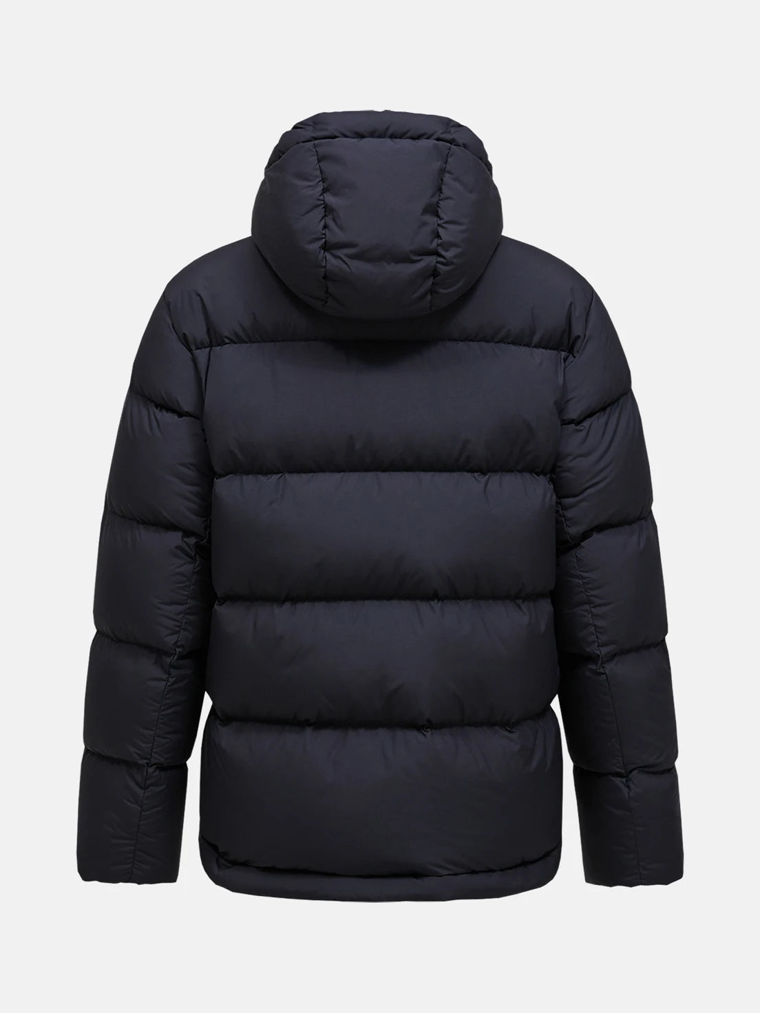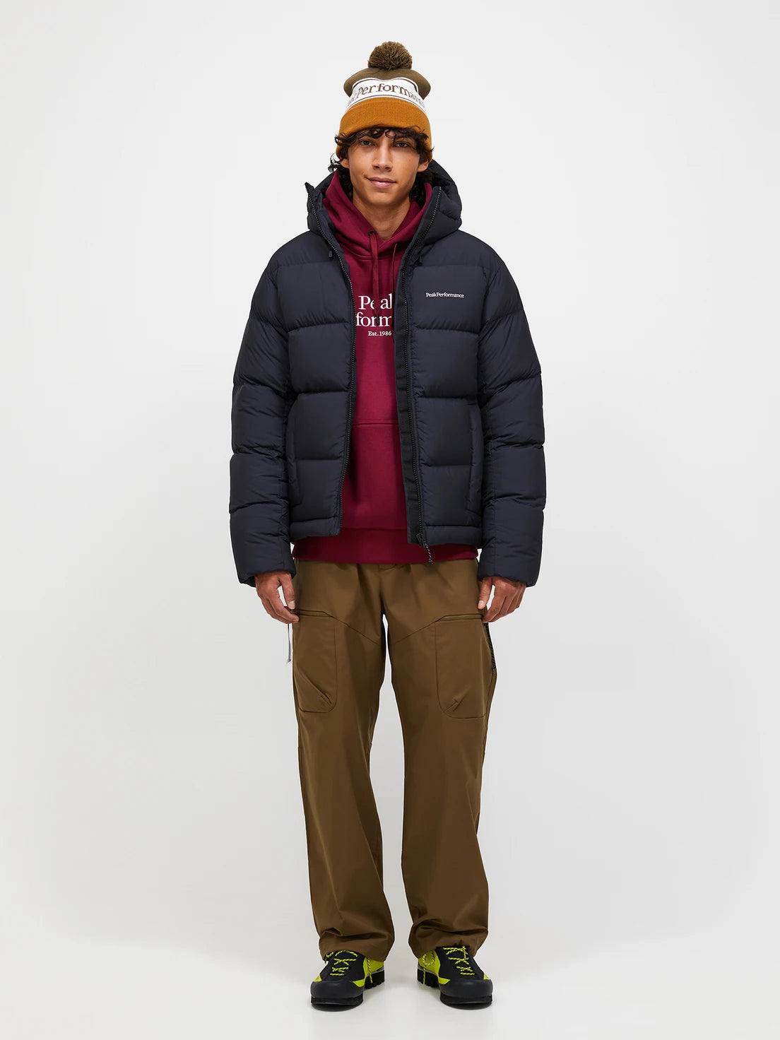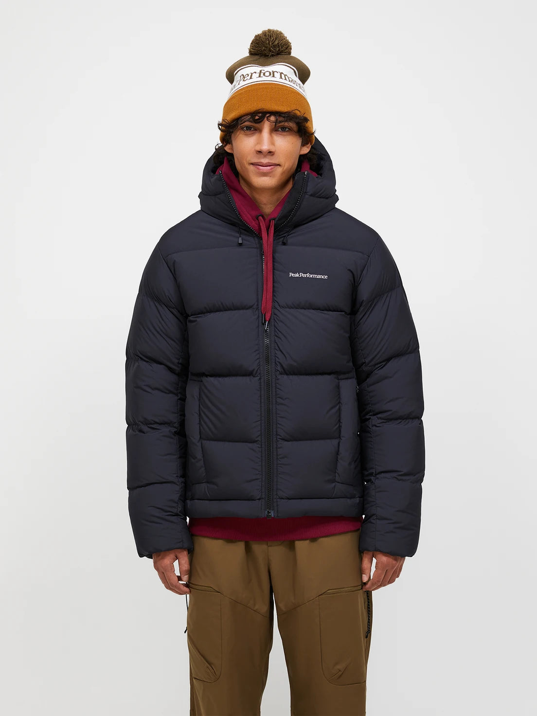 Riveljackan är utformad för att ge dig maximalt skydd med minimal miljöpåverkan. Tillverkas med vaddering av ansvarsfullt producerat dun. För värme, komfort och ett rent samvete. Modellen är 184cm lång och bär en storlek M.