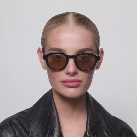 Zan - Black är en kantig tolkning av den klassiska runda designen. Formen skapar en kontrast mellan det hårda och det mjuka uttrycket, vilket ger en modern men fortfarande tidlös känsla. Zan är en idealisk unisexmodell eftersom den passar de flesta ansiktsformer.