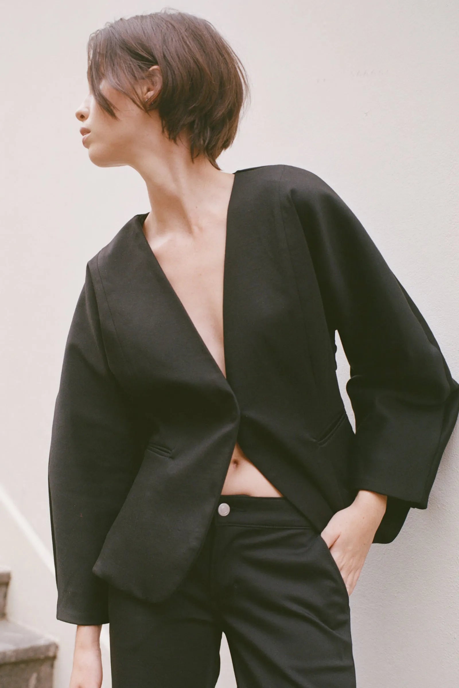 Each pattern piece has been expertly cut and tailored to enhance the cinched waist and batwing cut