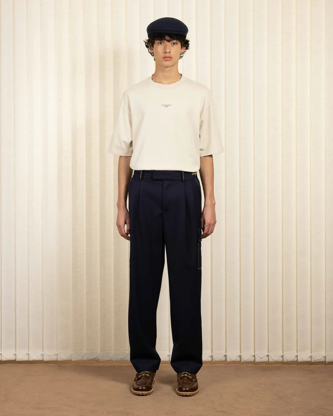 This beige 100% cotton interlock t-shirt with a ribbed neckline is printed with the 'Not from Paris Madame' slogan.