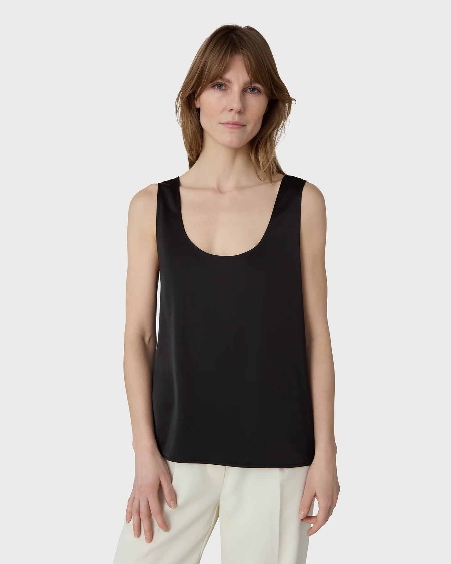 Scala Satin Top är ett ärmlöst linne med rund halsringning i satin stretch. Med sin tidlösa silhuett och mjuka, följsamma känsla är det en sofistikerad garderobsklassiker som fungerar lika självklart från dag till kväll.